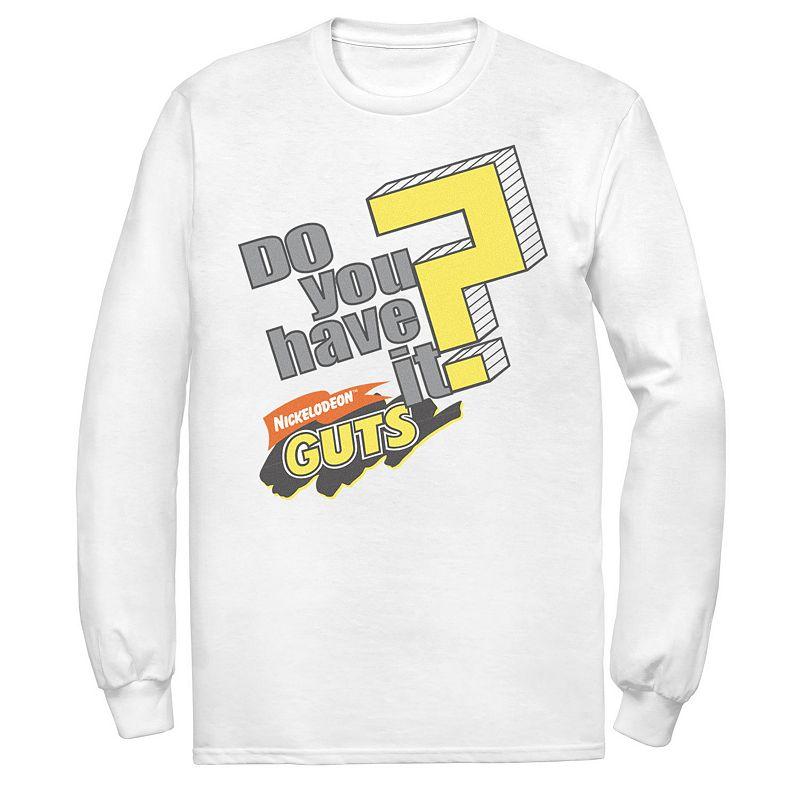 Men's Nickelodeon Guts Do You Have It Vintage Question Logo Long Sleeve Graphic Tee,