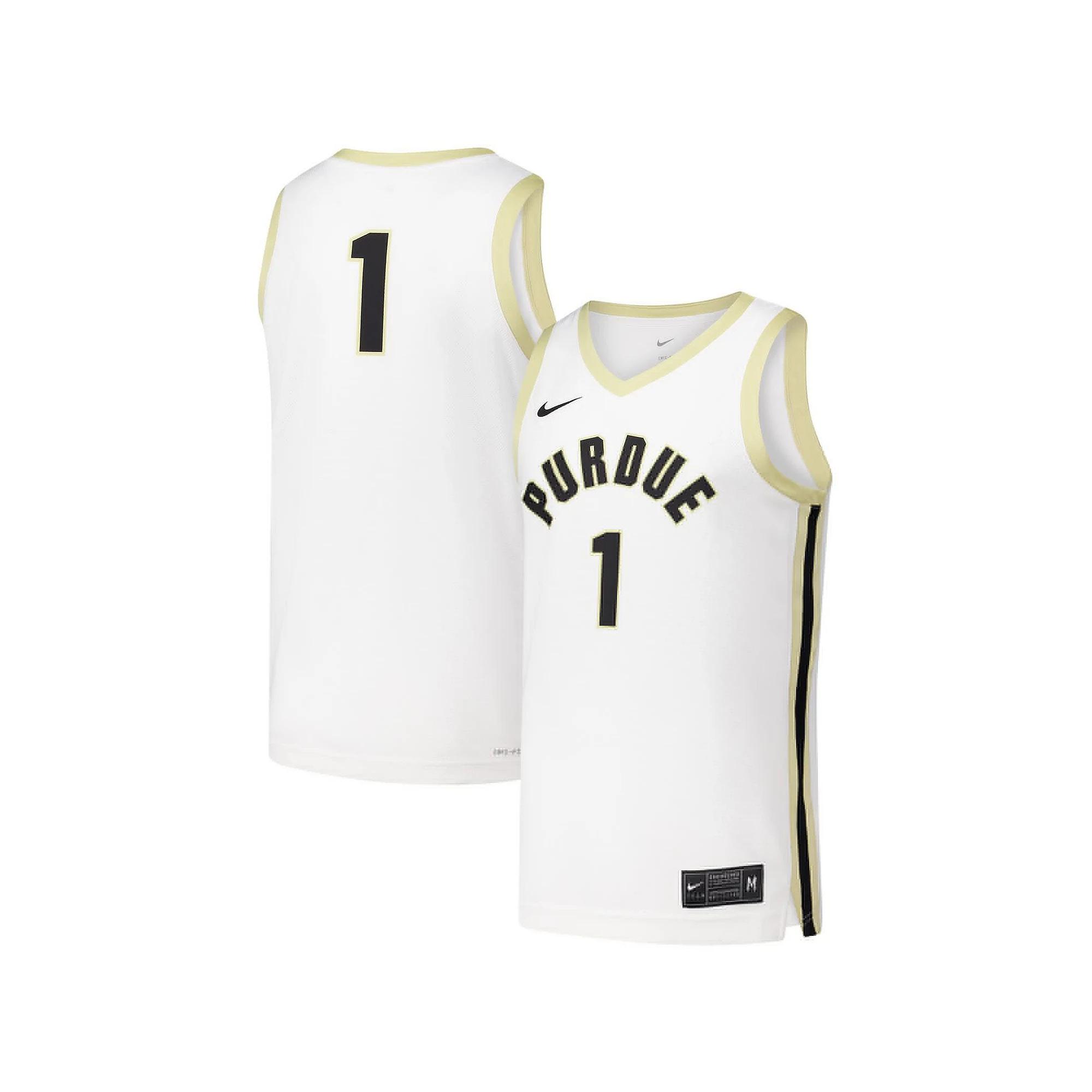 Look ready to hit the hardwood for your favorite college team in this Purdue Boilermakers Replica Basketball Jersey from Nike. Its lightweight, breathable mesh fabric is enhanced with sweat-wicking Dri-FIT technology to keep you cool and dry while playing or cheering from the stands. Screen print graphics on the front and back of this Purdue Boilermakers jersey provide a classic design.Look ready to hit the hardwood for your favorite college team in this Purdue Boilermakers Replica Basketball Jersey from Nike. Its lightweight, breathable mesh fabric is enhanced with sweat-wicking Dri-FIT technology to keep you cool and dry while playing or cheering from the stands. Screen print graphics on the front and back of this Purdue Boilermakers jersey provide a classic design.PRODUCT FEATURESReplicaOfficially licensedMaterial: 100% PolyesterDri-FIT technology wicks away moistureMachine wash, tumble dry lowMove To Zero apparel labeled sustainable materials is made with at least 50% recycled content as part of Nike's journey toward a zero carbon and zero waste futureSide insetsMesh fabric delivers enhanced breathabilitySleevelessImportedV-neckBrand: NikeScreen print graphics on the front and back Color: White. Gender: male. Age Group: adult.