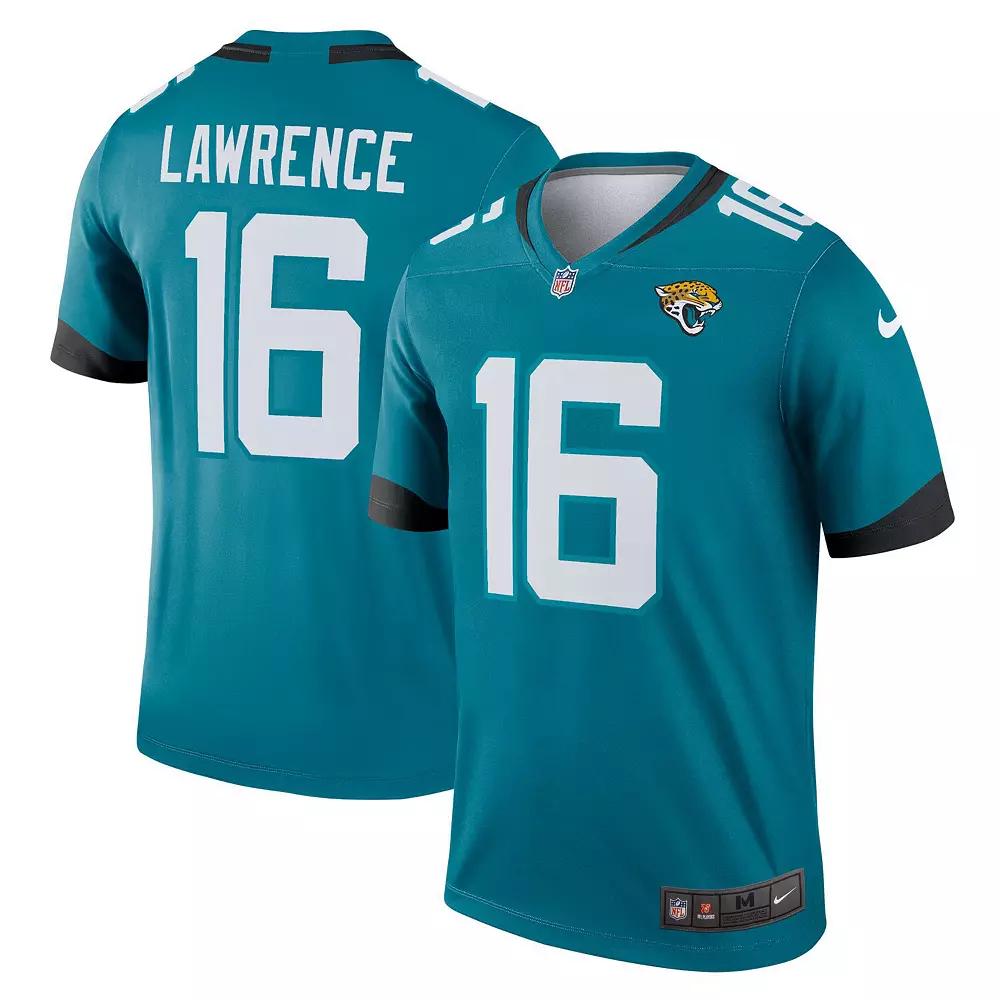 This Jacksonville Jaguars Trevor Lawrence Legend jersey from Nike is the perfect piece of gear for every game this season. It features Nike Dry fabrics with Dri-FIT technology that help keep you dry and comfortable on game day. Not to mention that its authentic sublimated design makes it easy to support your favorite team and player.This Jacksonville Jaguars Trevor Lawrence Legend jersey from Nike is the perfect piece of gear for every game this season. It features Nike Dry fabrics with Dri-FIT technology that help keep you dry and comfortable on game day. Not to mention that its authentic sublimated design makes it easy to support your favorite team and player.PRODUCT FEATURESDri-FIT technology wicks away moistureImportedMachine wash, tumble dry lowOfficially licensedNike Dry fabrics move sweat from your skin for quicker evaporationhelping you stay dry, comfortable and focused on the task at handWoven jock tag sewn on front left hemStitched-down NFL shield at front neckNike LegendMaterial: 100% PolyesterJersey Color Style: PrimaryYoke seam on frontSublimated graphicsBrand: NikeShort sleeveBack neck taping Color: JAG BLUE. Gender: male. Age Group: adult. Material: COTTON.