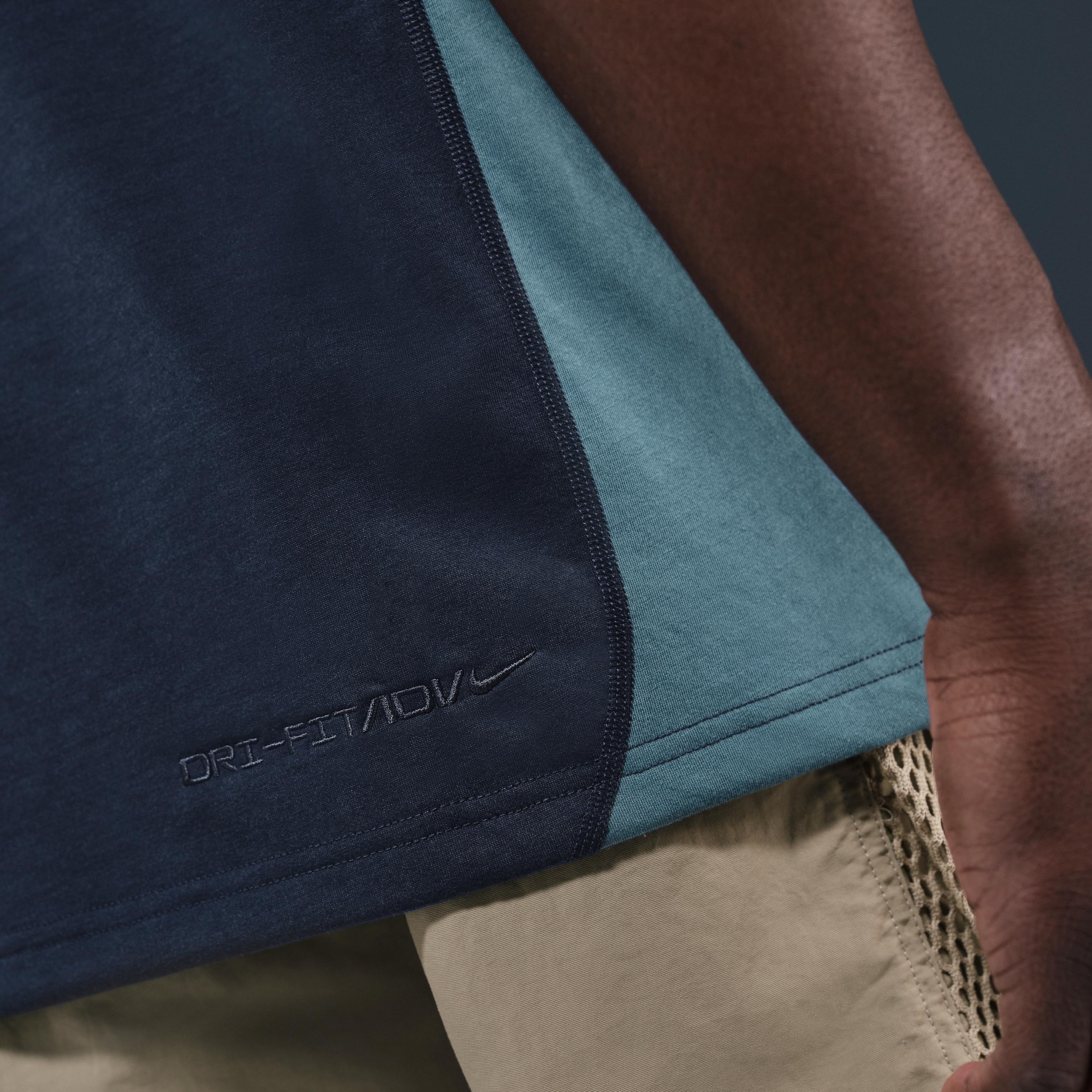 We gave this Goat Rocks tee a roomier cut than previous versions to create a relaxed fit that sits off the body. Like previous versions, its made with breathable fabric and advanced sweat-wicking tech to help you stay dry and comfortable. UV protection keeps you covered from the suns rays. Benefits:Nike Dri-FIT ADV levels up our sweat-wicking technology with advanced cooling and zones of breathability to help you stay dry and comfortable. This product provides UVA and UVB protection from the sun only in the areas covered by the garment. To protect exposed areas, the use of good quality sunscreen is recommended. Product Details:Embroidered ACG logo. 100% polyester. Machine wash. Imported. Style: HJ2881; Color: Thunder Blue/Smokey Blue/Summit White; Size: S; Gender: Male; Age Group: Adult | Nike ACG Goat Rocks Mens Dri-FIT ADV UV Short-Sleeve Shirt in Blue, Size: Small | HJ2881-437