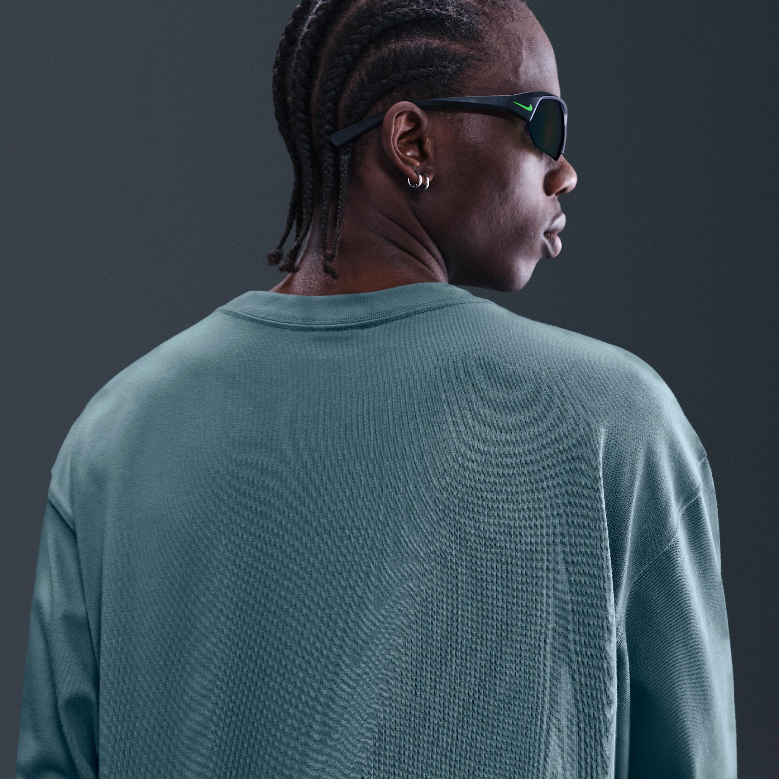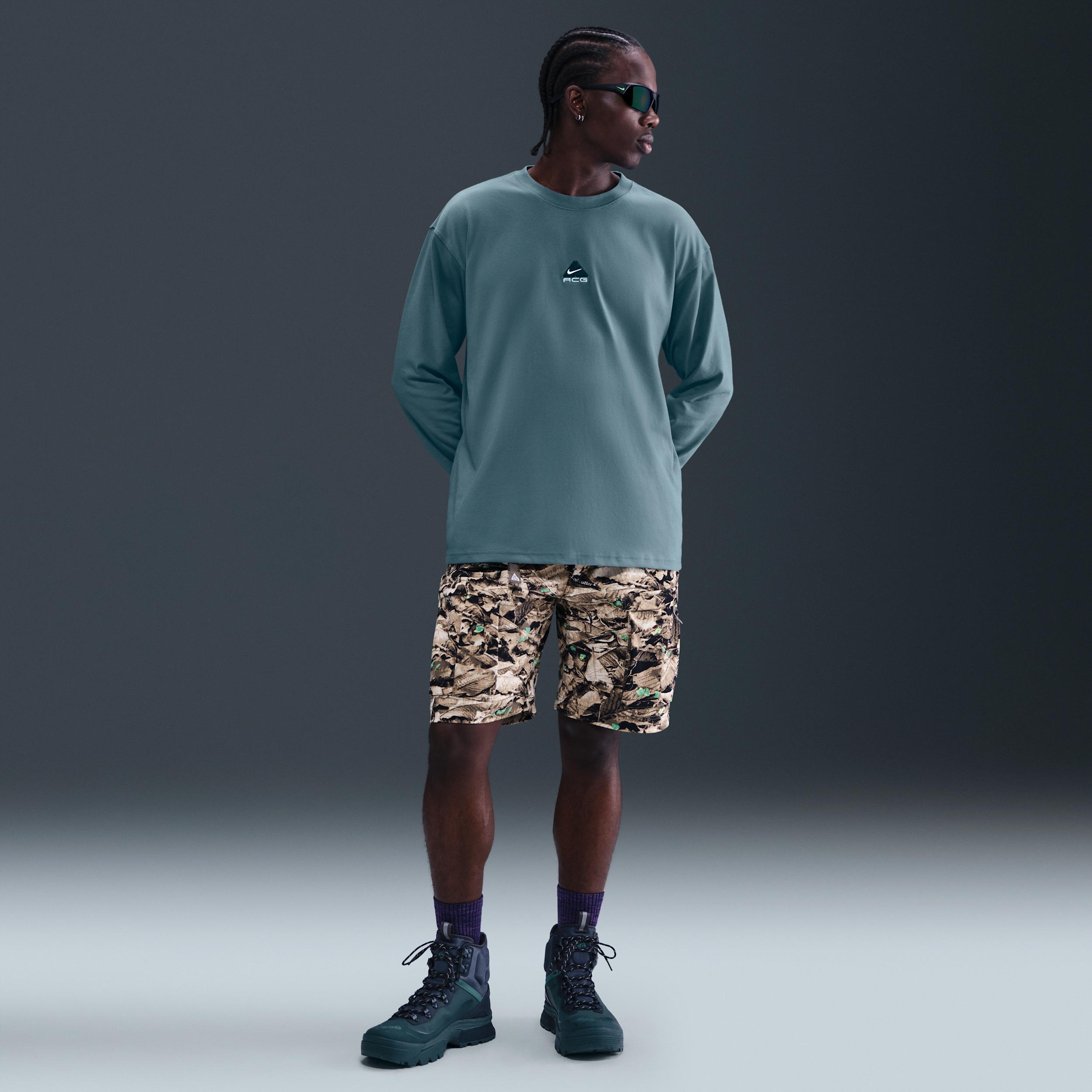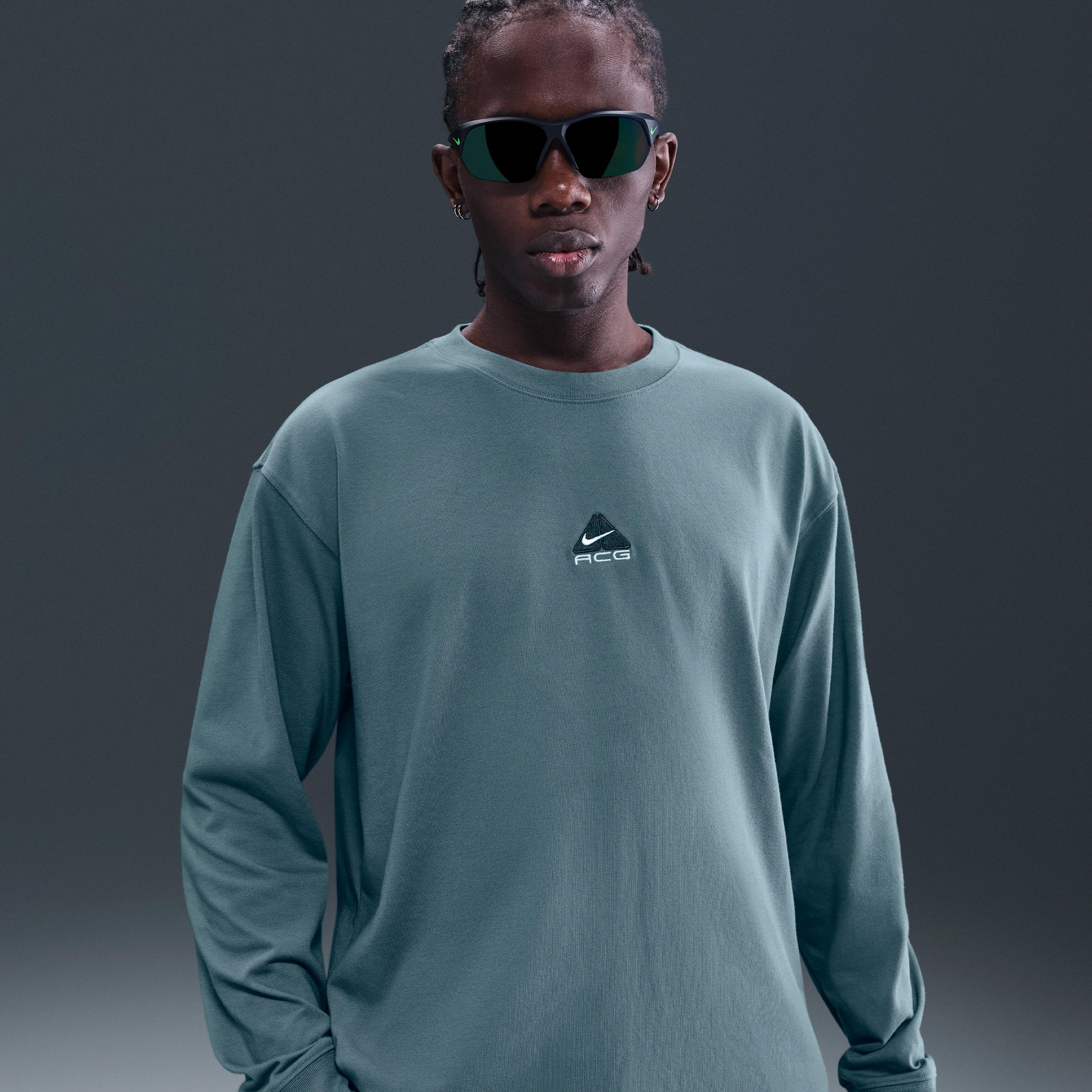 This soft, spacious long-sleeve tee has the slightly baggy feel of a vintage tee. To help you out when the views take your breath away, weve printed an extra set of lungs on the chest. Benefits:Nike Dri-FIT technology moves sweat away from your skin for quicker evaporation, helping you stay dry and comfortable. Jersey fabric is soft and smooth for everyday wearability. ACG logo has the look of lungs reminding you to go out and get some fresh air. Product Details:63% polyester/37% cotton. Machine wash. Imported. Style: DR7753; Color: Smokey Blue; Size: XL; Gender: Male; Age Group: Adult | Nike ACG Lungs Mens Long-Sleeve T-Shirt in Blue, Size: XL | DR7753-006