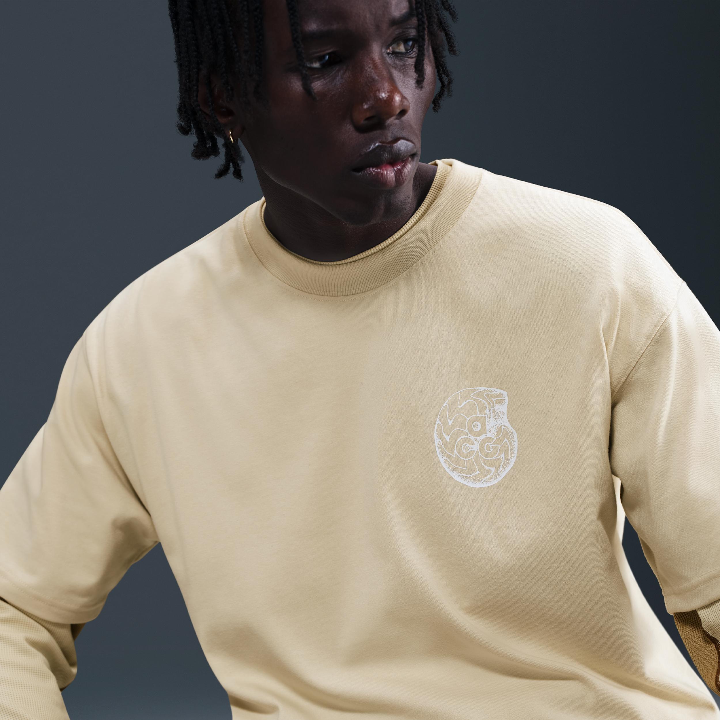 This tee was inspired by fossils we spotted on ACG's canoe camping trip in Big Bend National Park in west Texas. Heavyweight, sweat-wicking fabric has a stiff drape and structured feel. Benefits:Nike Dri-FIT technology moves sweat away from your skin for quicker evaporation, helping you stay dry and comfortable. Loose fit feels roomy through the body. [] Product Details:Ribbed collar. 63% polyester/37% cotton. Machine wash. Imported. Style: HV1296; Color: Light Khaki; Size: L; Gender: Male; Age Group: Adult | Nike ACG Men's T-Shirt in Brown, Size: Large | HV1296-229