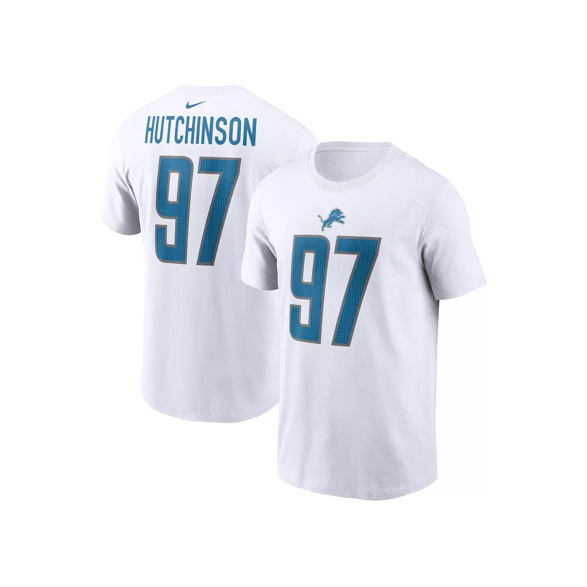 Aidan Hutchinson is consistently one of the most dominant players on the gridiron. This Player Name and Number T-shirt from Nike is a strong tribute to your favorite players career with the Detroit Lions. Designed as a simple alternative to the on-field jerseys, this player tee features bold graphics on the front and back so you can proudly support your Detroit Lions.Aidan Hutchinson is consistently one of the most dominant players on the gridiron. This Player Name and Number T-shirt from Nike is a strong tribute to your favorite players career with the Detroit Lions. Designed as a simple alternative to the on-field jerseys, this player tee features bold graphics on the front and back so you can proudly support your Detroit Lions.PRODUCT FEATURESShort sleeveScreen print graphicsBrand: NikeImportedMachine wash, tumble dry lowOfficially licensedMaterial: 100% CottonCrew neck Size: 2XL. Color: White. Gender: male. Age Group: adult.