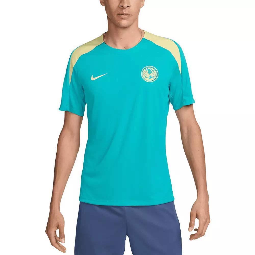 Get ready to cheer on Club America with the Nike 2024 Third Strike Top. Made with 100% polyester, this top features Dri-FIT technology to wick away moisture, keeping you cool and dry. Its crew neck and short sleeves offer a classic and comfortable fit, while the embroidered fabric applique on the left chest adds a touch of team pride.Get ready to cheer on Club America with the Nike 2024 Third Strike Top. Made with 100% polyester, this top features Dri-FIT technology to wick away moisture, keeping you cool and dry. Its crew neck and short sleeves offer a classic and comfortable fit, while the embroidered fabric applique on the left chest adds a touch of team pride.PRODUCT FEATURESMaterial: 100% PolyesterOfficially licensedMachine wash, tumble dry lowCrew neckShoulder insetsImportedSponsor name printed across the torsoBrand: NikeDri-FIT technology wicks away moistureEmbroidered fabric applique on the left chestMove To Zero apparel labeled sustainable materials is made with at least 50% recycled content as part of Nikes journey toward a zero carbon and zero waste futureShort sleeve Color: Caf Turq A. Gender: male. Age Group: adult. Material: Cotton.