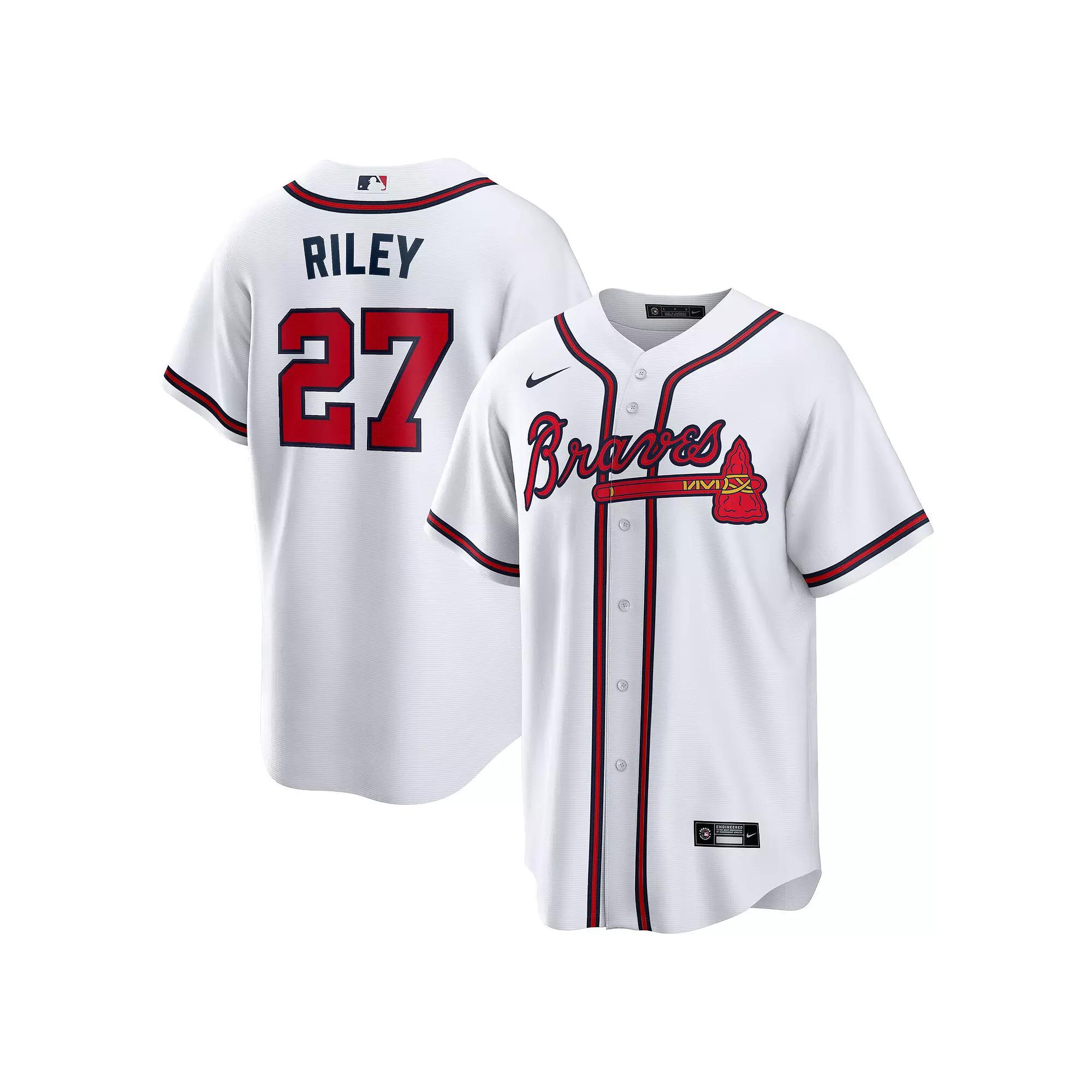 Youre the type of Atlanta Braves fan who counts down the minutes until the first pitch. When your squad finally hits the field, show your support all game long with this Austin Riley Replica Player jersey from Nike. Its classic full-button design features crisp player and Atlanta Braves applique graphics, leaving no doubt youll be along for the ride for all 162 games and beyond this season.Youre the type of Atlanta Braves fan who counts down the minutes until the first pitch. When your squad finally hits the field, show your support all game long with this Austin Riley Replica Player jersey from Nike. Its classic full-button design features crisp player and Atlanta Braves applique graphics, leaving no doubt youll be along for the ride for all 162 games and beyond this season.PRODUCT FEATURESJersey Color Style: HomeOfficially licensedBrand: NikeMachine wash, tumble dry lowImportedHeat-sealed transfer appliqueFull-button frontMaterial: 100% PolyesterMLB Batterman applique on center back neckHeat-sealed jock tagRounded hemShort sleeveReplica Color: White. Gender: male. Age Group: adult. Material: COTTON.