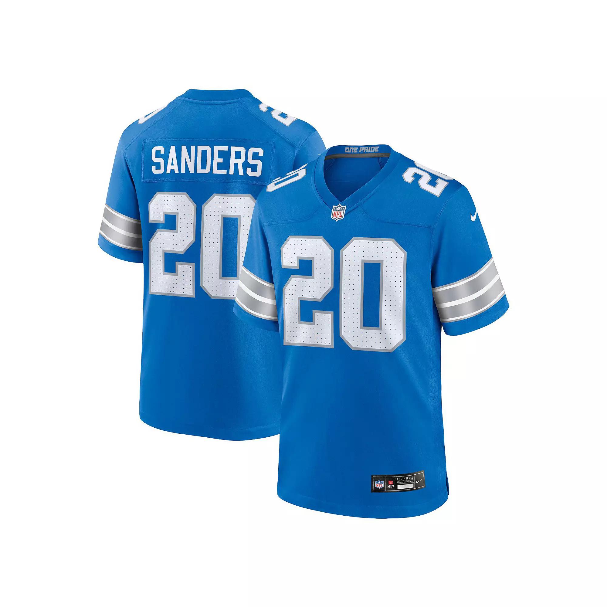 Rep one of your team's top stars with this Detroit Lions Jersey. Proper ventilation and a loose fit help provide a dry, comfortable wear with the authentic look of the on-field uniform. Benefits:Screen-printed name, number and team mark offer lightweight durability. Ventilation over major heat zones helps keep you cool. Product Details:NFL shield at V-neck. Tagless neck label. Woven jock tag. 100% polyester. Machine wash. Imported. Style: 67NM0B9KW1K; Color: Blue; Size: L; Gender: Male; Age Group: Adult | Barry Sanders Detroit Lions Men's Nike NFL Game Football Jersey in Blue, Size: Large | 67NM0B9KW1K-8UJ