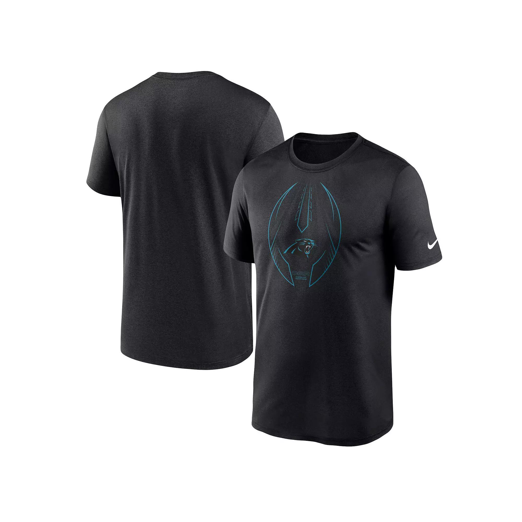 Portray your hardcore enthusiasm for Carolina Panthers game day by wearing this Legend Icon T-shirt from Nike. It features a football-shaped design with the Carolina Panthers logo printed in the middle. In addition, the Dri-FIT fabric will help keep you feeling comfortable.Portray your hardcore enthusiasm for Carolina Panthers game day by wearing this Legend Icon T-shirt from Nike. It features a football-shaped design with the Carolina Panthers logo printed in the middle. In addition, the Dri-FIT fabric will help keep you feeling comfortable.PRODUCT FEATURESOfficially licensedTagless CollarNike Dry fabrics move sweat from your skin for quicker evaporation helping you stay dry, comfortable and focused on the task at handShort sleeveMachine wash, tumble dry lowCrew neckScreen print graphicsMaterial: 100% PolyesterDri-FIT technology wicks away moistureImportedBrand: Nike Size: 2XL. Color: Black. Gender: male. Age Group: adult.