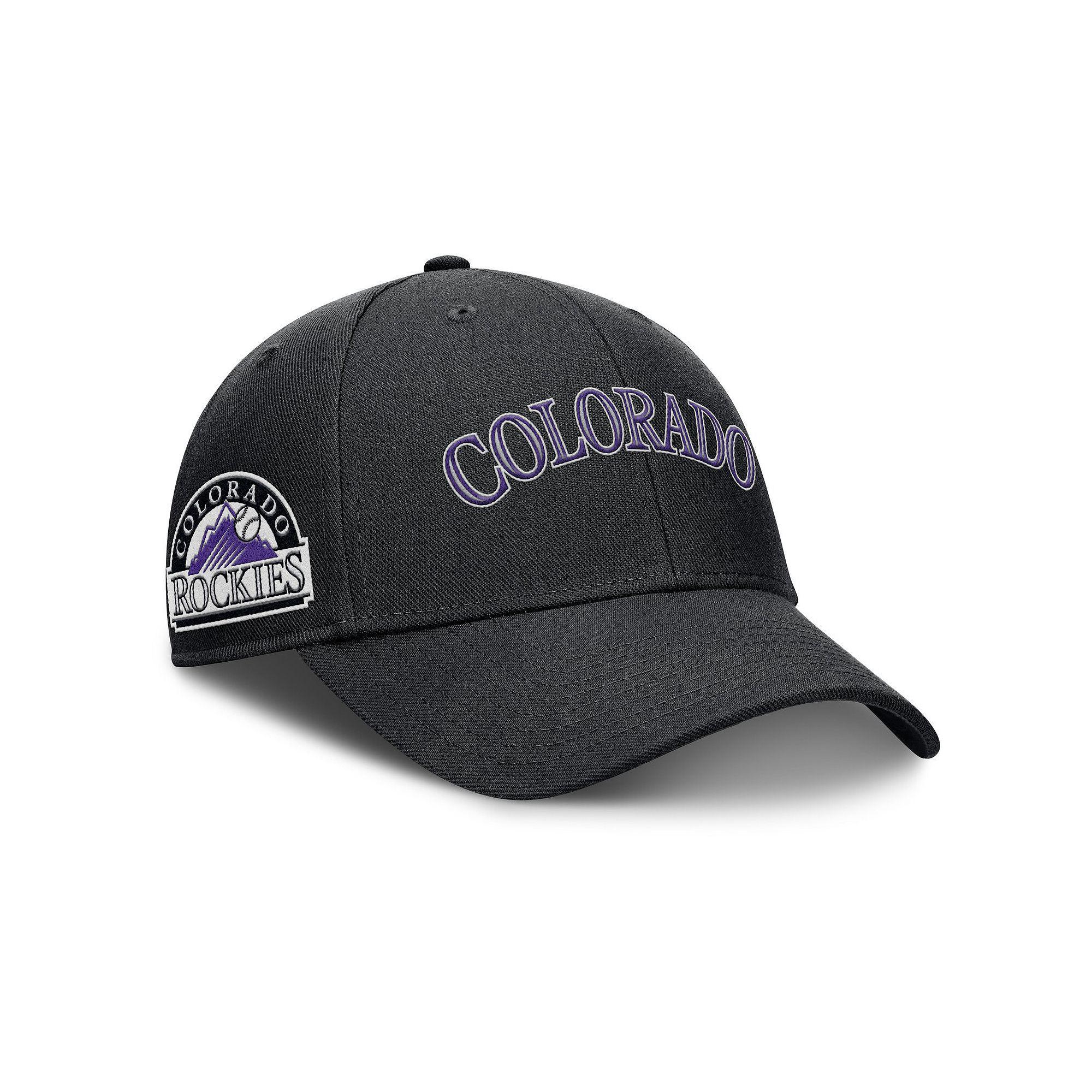 Represent the Colorado Rockies from multiple angles with this Rise Gaberdine Adjustable Hat by Nike. It features team details embroidered on the front, back and side panel to make your fandom undeniable. A snap closure lets you quickly and easily adjust the fit of this Colorado Rockies hat for comfortable wearing all day.Represent the Colorado Rockies from multiple angles with this Rise Gaberdine Adjustable Hat by Nike. It features team details embroidered on the front, back and side panel to make your fandom undeniable. A snap closure lets you quickly and easily adjust the fit of this Colorado Rockies hat for comfortable wearing all day.PRODUCT FEATURESStructured fitMid CrownCurved billImportedSnap ClosureOfficially licensedEmbroidered team logo with raised details on the front and backTeam patch embroidered on right-side panelWipe clean with a damp clothSix panels with eyeletsMaterial: 100% PolyesterBrand: Nike Size: M/L. Color: Black. Gender: male. Age Group: adult.