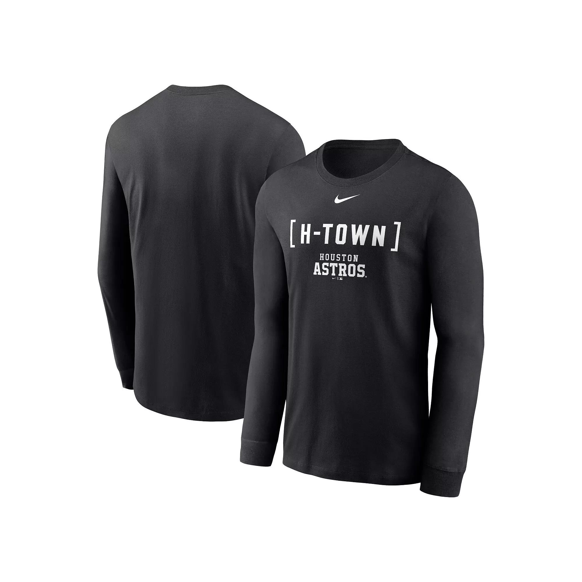 Rep your Houston Astros fandom with local pride in this Nike Local Nickname Long Sleeve T-Shirt. With a classic crew neck and rib-knit cuffs, this long sleeve tee provides a comfortable and stylish fit thats perfect for everyday wear. The moniker boldly displayed across the torso lets everyone know youre a true fan of the Houston Astros.Rep your Houston Astros fandom with local pride in this Nike Local Nickname Long Sleeve T-Shirt. With a classic crew neck and rib-knit cuffs, this long sleeve tee provides a comfortable and stylish fit thats perfect for everyday wear. The moniker boldly displayed across the torso lets everyone know youre a true fan of the Houston Astros.PRODUCT FEATURESOfficially licensedLocal moniker printed across the torsoImportedMachine wash, tumble dry lowLong sleeveMaterial: 100% CottonCrew neckRib-knit cuffsNike Swoosh printed below collarBrand: Nike Size: XL. Color: Black. Gender: male. Age Group: adult.
