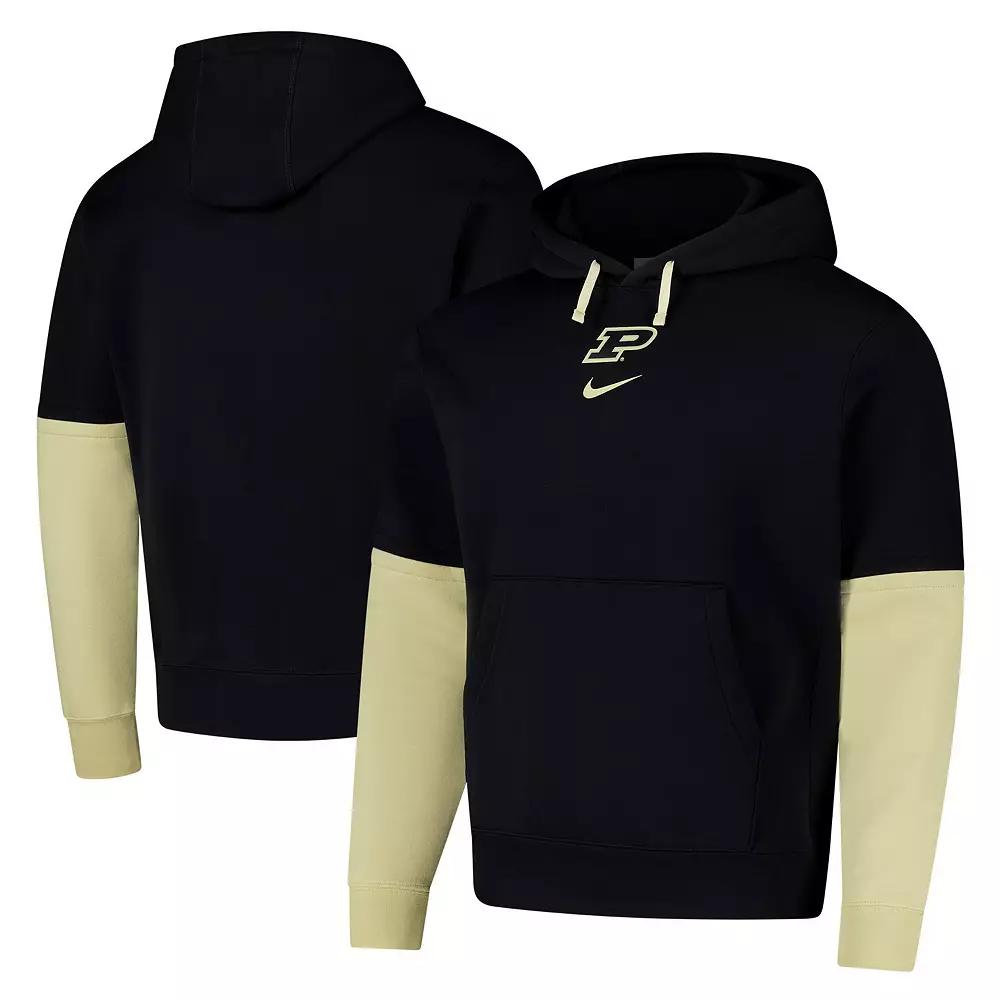 Gear up for the season in cozy comfort with this Purdue Boilermakers Sideline Club Fleece Pullover Hoodie from Nike. This official piece of sideline outerwear features a fleece lining for added warmth, making it perfect for cheering on the Purdue Boilermakers during those chilly game days. The embroidered team logo on the front proudly displays your allegiance.Gear up for the season in cozy comfort with this Purdue Boilermakers Sideline Club Fleece Pullover Hoodie from Nike. This official piece of sideline outerwear features a fleece lining for added warmth, making it perfect for cheering on the Purdue Boilermakers during those chilly game days. The embroidered team logo on the front proudly displays your allegiance.PRODUCT FEATURESFront pouch pocketOfficially licensedLong sleevePulloverMachine wash with garment inside out, tumble dry lowMidweight hoodie suitable for moderate temperaturesHoodedSame outerwear worn by the players, coaches and team staffMaterial: 80% Cotton/20% Polyester - Body; 100% Cotton - Hood LiningImportedFleece lining provides added warmthBrand: NikeOne time removable sleeve with finished seamPrinted team logo at top center chest Size: XL. Color: Black. Gender: male. Age Group: adult.