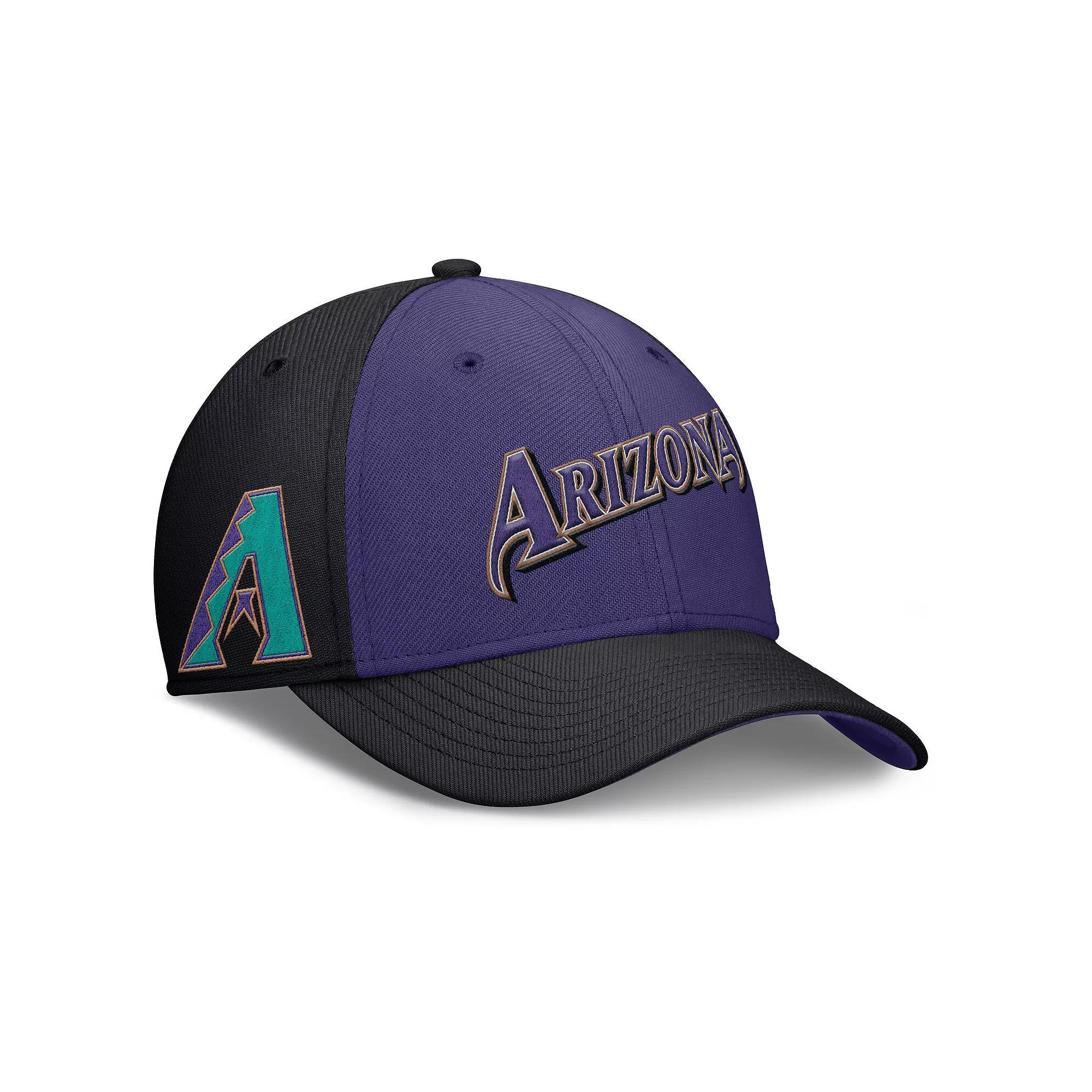 Bring back an old-school Arizona Diamondbacks look with this Rise Swoosh Performance Flex Hat by Nike. Its two-tone design features vintage team details embroidered on the front, back and side panel. Made from stretch wool twill fabric, this Arizona Diamondbacks hat feels comfortable to wear all day.Bring back an old-school Arizona Diamondbacks look with this Rise Swoosh Performance Flex Hat by Nike. Its two-tone design features vintage team details embroidered on the front, back and side panel. Made from stretch wool twill fabric, this Arizona Diamondbacks hat feels comfortable to wear all day.PRODUCT FEATURESCurved billMid CrownMade from stretch wool twill fabricSix panels with eyeletsOfficially licensedStretch fitDri-FIT technology wicks away moistureWipe clean with a damp clothVintage team wordmark embroidered with raised details across the frontStructured fitImportedBrand: NikeMaterial: 98% Polyester/2% SpandexThrowback team logo embroidered on the right-side panel and back Size: L/XL. Color: Black. Gender: male. Age Group: adult.
