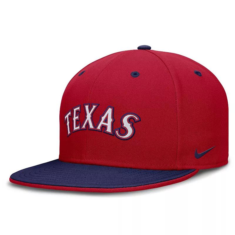 Support your Texas Rangers in style with this True Primetime Two-Tone Performance Fitted Hat from Nike. This hat features an embroidered team logo on the front and wordmark on the back, letting everyone know who youre rooting for. With its high crown and structured fit, this Texas Rangers hat offers a classic look with a modern feel.Support your Texas Rangers in style with this True Primetime Two-Tone Performance Fitted Hat from Nike. This hat features an embroidered team logo on the front and wordmark on the back, letting everyone know who youre rooting for. With its high crown and structured fit, this Texas Rangers hat offers a classic look with a modern feel.PRODUCT FEATURESFlat billHigh CrownFittedDri-FIT technology wicks away moistureBrand: NikeStructured fitOfficially licensedMaterial: 100% PolyesterWipe clean with a damp clothImportedSix panels with eyeletsContrast-color underbillEmbroidered team logo on front and wordmark on back Size: 8. Gender: male. Age Group: adult. Material: COTTON.