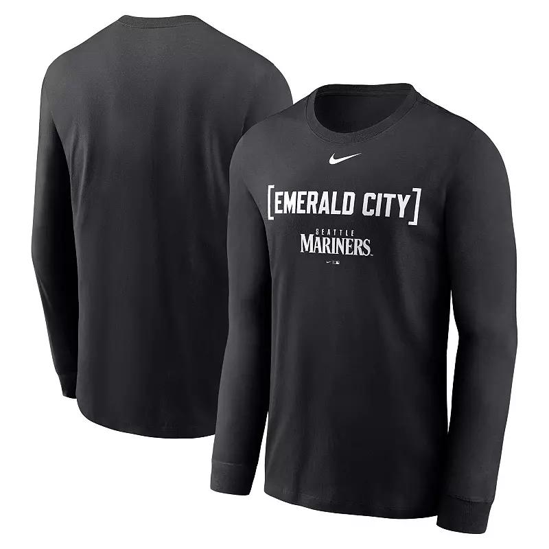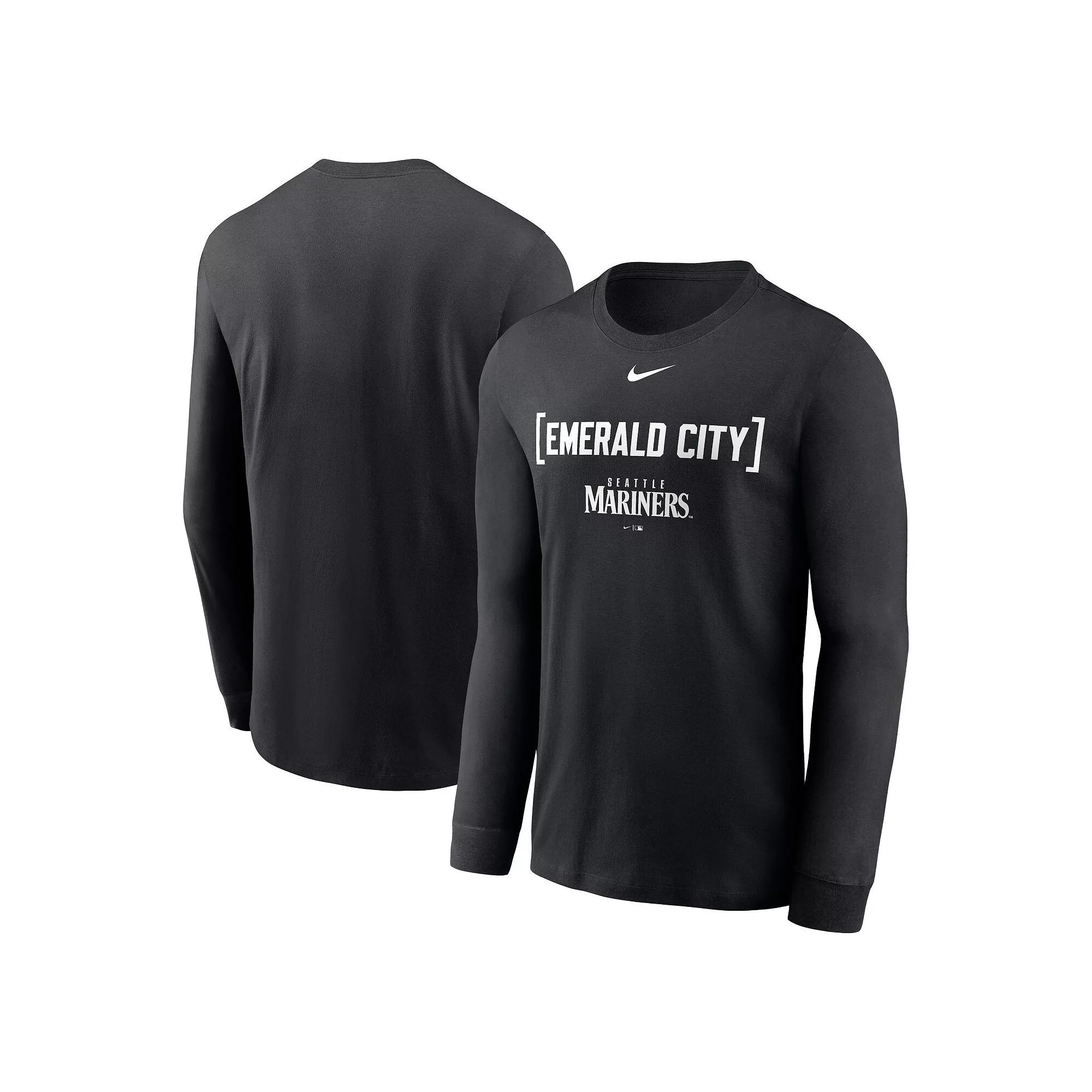 Rep your Seattle Mariners fandom with local pride in this Nike Local Nickname Long Sleeve T-Shirt. With a classic crew neck and rib-knit cuffs, this long sleeve tee provides a comfortable and stylish fit thats perfect for everyday wear. The moniker boldly displayed across the torso lets everyone know youre a true fan of the Seattle Mariners.Rep your Seattle Mariners fandom with local pride in this Nike Local Nickname Long Sleeve T-Shirt. With a classic crew neck and rib-knit cuffs, this long sleeve tee provides a comfortable and stylish fit thats perfect for everyday wear. The moniker boldly displayed across the torso lets everyone know youre a true fan of the Seattle Mariners.PRODUCT FEATURESLong sleeveCrew neckMachine wash, tumble dry lowImportedOfficially licensedMaterial: 100% CottonRib-knit cuffsBrand: NikeLocal moniker printed across the torsoNike Swoosh printed below collar Color: Black. Gender: male. Age Group: adult.
