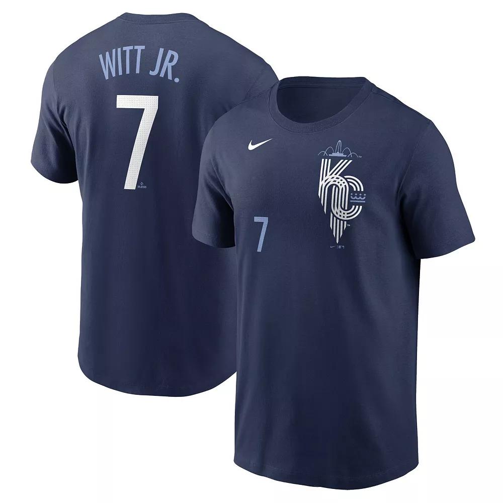 Embrace your Kansas City Royals fandom with the Nike Bobby Witt Jr. City Connect Fuse Name & Number T-Shirt, a stylish way to celebrate your favorite player. Showcasing Bobby Witt Jr.s name and number in bold team colors on the back, this T-shirt proudly displays your admiration for the Kansas City Royals rising star. Whether youre cheering from the stands or watching from home, this tee is the perfect way to show your Royals pride and support for their exciting young star.Embrace your Kansas City Royals fandom with the Nike Bobby Witt Jr. City Connect Fuse Name & Number T-Shirt, a stylish way to celebrate your favorite player. Showcasing Bobby Witt Jr.s name and number in bold team colors on the back, this T-shirt proudly displays your admiration for the Kansas City Royals rising star. Whether youre cheering from the stands or watching from home, this tee is the perfect way to show your Royals pride and support for their exciting young star.PRODUCT FEATURESImportedMachine wash, tumble dry lowShort sleeveMaterial: 100% CottonCrew neckBrand: NikeOfficially licensedScreen print graphics Size: XL. Color: Navy. Gender: male. Age Group: adult.