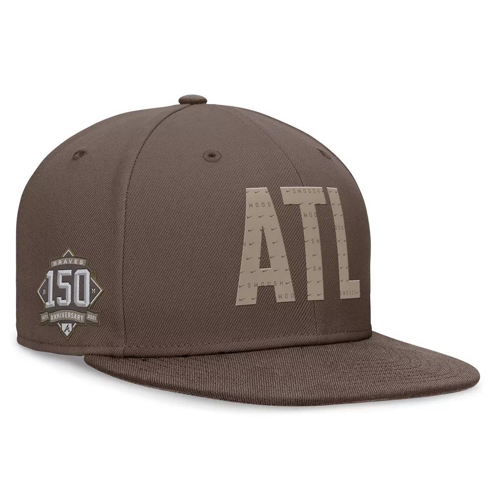 Your team pride is easy to notice with this Atlanta Braves Statement Ironstone True hat. Made by Nike, its neutral design features sweat-wicking Dri-FIT technology for a cool, comfortable feel and Atlanta Braves graphics on the front, side panel and across the back. The structured build and precise sizing ensures this cap fits you perfectly.Your team pride is easy to notice with this Atlanta Braves Statement Ironstone True hat. Made by Nike, its neutral design features sweat-wicking Dri-FIT technology for a cool, comfortable feel and Atlanta Braves graphics on the front, side panel and across the back. The structured build and precise sizing ensures this cap fits you perfectly.PRODUCT FEATURESRubberized applique on front crownOfficially licensedStructured fitFittedSix panels with eyeletsHigh CrownImportedFlat bill with ability to curveEmbroidered detailsDri-FIT technology wicks away moistureMaterial: 100% PolyesterBrand: NikeWipe clean with a damp cloth Size: 7 3/4. Color: BRV BROWN. Gender: male. Age Group: adult. Material: COTTON.