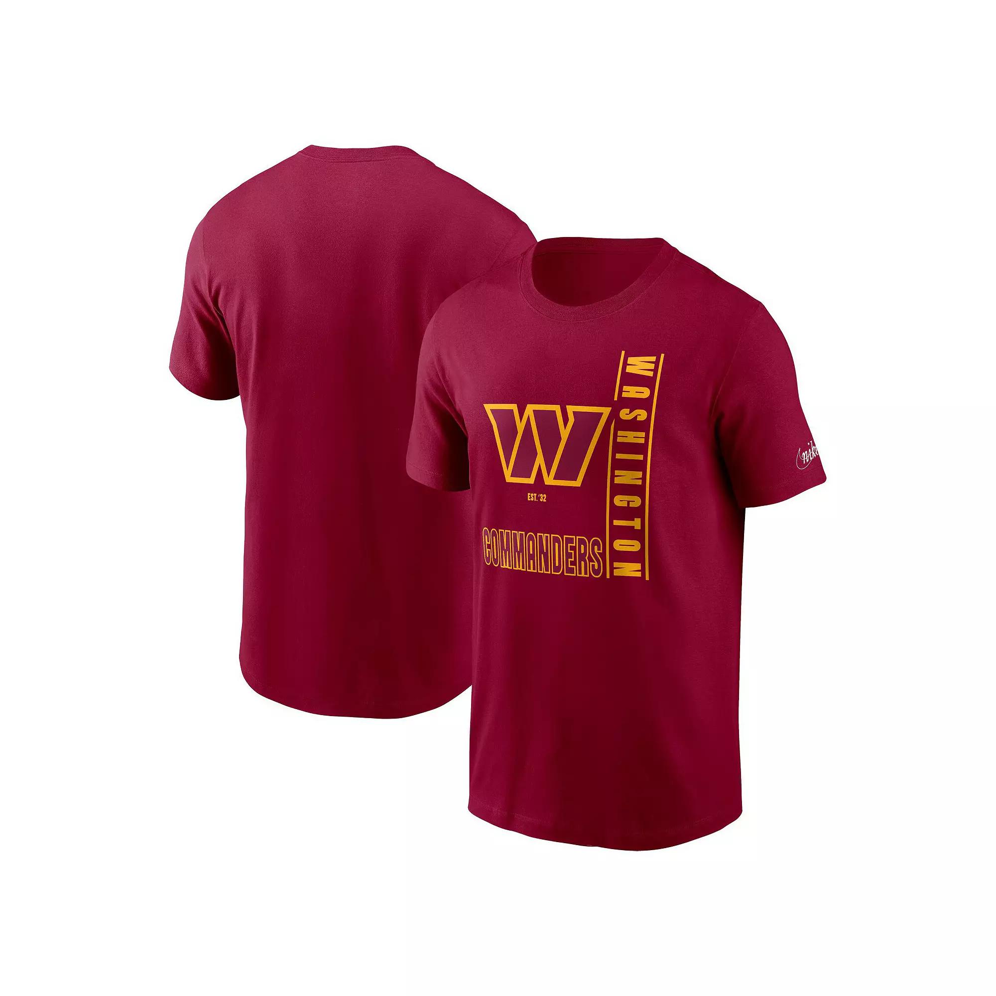 Keep go-to Washington Commanders apparel on hand with this Lockup Essential T-shirt from Nike. It features noticeable Washington Commanders graphics that easily show dedication to your favorite NFL team. Soft cotton fabric provides all-day comfort.