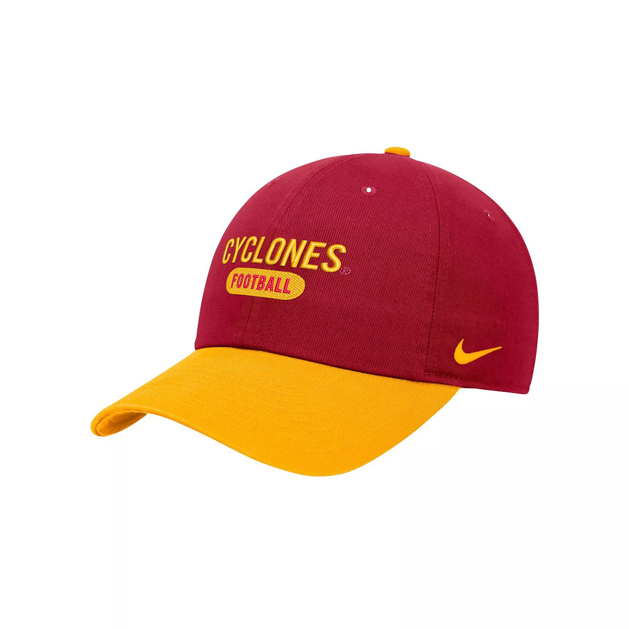 Show off your Iowa State Cyclones spirit with this Colorblock Club Adjustable Hat from Nike. This hat features a classic six-panel design and an unstructured, relaxed fit for a comfortable feel. Show off your Cyclones pride with the bold, embroidered graphics displayed prominently on the front.Show off your Iowa State Cyclones spirit with this Colorblock Club Adjustable Hat from Nike. This hat features a classic six-panel design and an unstructured, relaxed fit for a comfortable feel. Show off your Cyclones pride with the bold, embroidered graphics displayed prominently on the front.PRODUCT FEATURESUnstructured relaxed fitLow CrownAdjustable fabric strap with slide buckleCurved billWipe clean with a damp clothImportedOne size fits mostSix panels with eyeletsEmbroidered graphics on frontOfficially licensedMaterial: 100% CottonBrand: Nike Size: One Size. Gender: male. Age Group: adult.