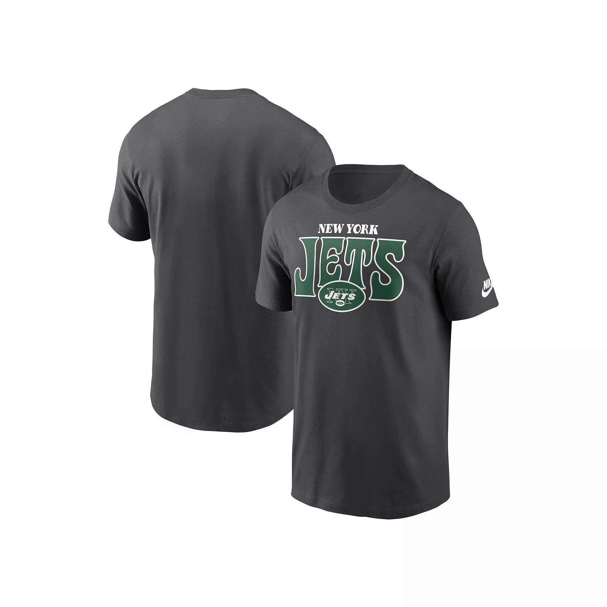 Channel vintage vibes while repping your New York Jets with the Nike Rewind Stack Essential T-Shirt. The screen print team name and logo stacked on the front let you show off your New York Jets pride. Plus, the 100% cotton fabric provides all-day comfort for wherever your fandom takes you.Channel vintage vibes while repping your New York Jets with the Nike Rewind Stack Essential T-Shirt. The screen print team name and logo stacked on the front let you show off your New York Jets pride. Plus, the 100% cotton fabric provides all-day comfort for wherever your fandom takes you.PRODUCT FEATURESImportedOfficially licensedMaterial: 100% CottonBrand: NikeCrew neck provides a traditional look and is comfortable to wear all dayMachine wash, tumble dry lowScreen print team name and logo stacked on the frontShort sleeve Size: M. Color: Charco. Gender: male. Age Group: adult.