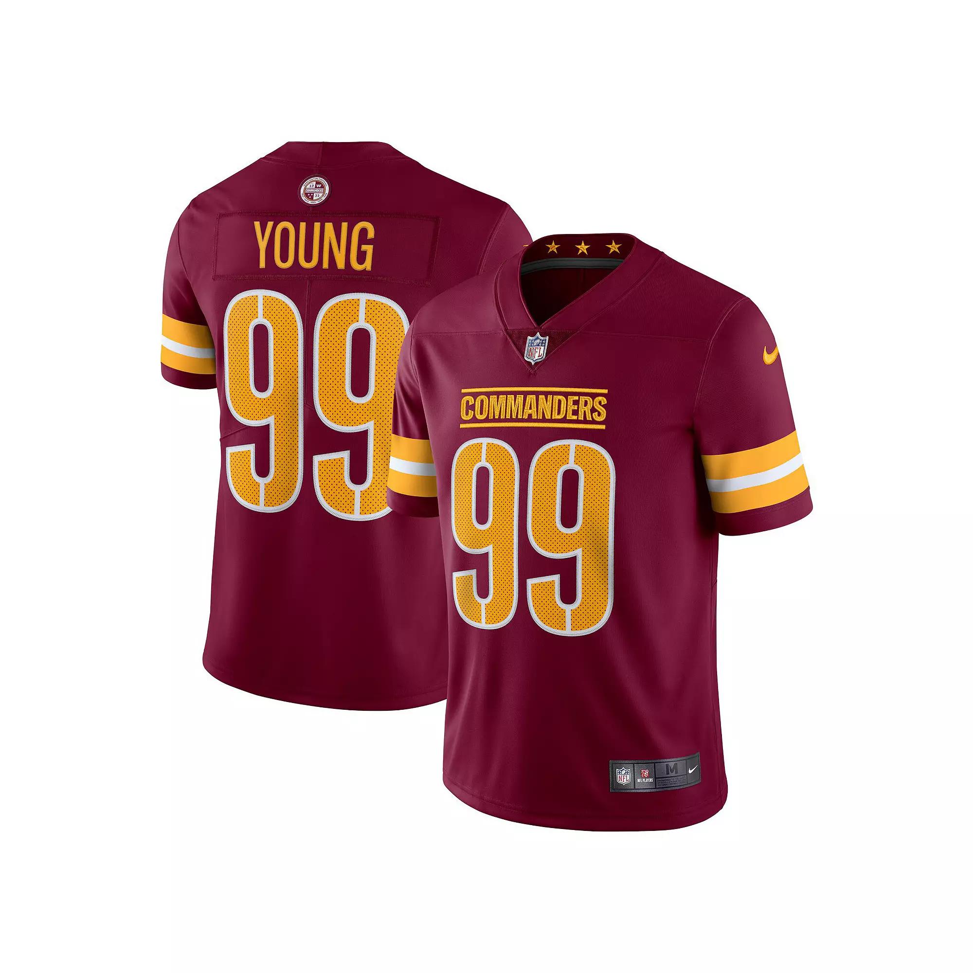 Crafted to provide an authentic game-ready look and feel, this Chase Young Vapor Limited jersey from Nike is designed with passionate Washington Commanders fans in mind. It is constructed out of lightweight material and Nike Dry fabrics with moisture-wicking Dri-FIT technology to ensure breathability and comfort from kickoff to the final whistle. The detailed Washington Commanders graphics and colors make a statement no matter where you go to enjoy the action.Crafted to provide an authentic game-ready look and feel, this Chase Young Vapor Limited jersey from Nike is designed with passionate Washington Commanders fans in mind. It is constructed out of lightweight material and Nike Dry fabrics with moisture-wicking Dri-FIT technology to ensure breathability and comfort from kickoff to the final whistle. The detailed Washington Commanders graphics and colors make a statement no matter where you go to enjoy the action.Tagless CollarNike Dry fabrics move sweat from your skin for quicker evaporation helping you stay dry, comfortable and focused on the task at handDri-FIT technology wicks away moistureOfficially licensedImportedBrand: NikeFit: Mens Nike Limited Jerseys have a Standard Fit, not too tight and not too loose. We recommend ordering one size larger than you normally wear for a looser fit or up two sizes if you plan on layering underneath the jersey.Short sleeveChainmaille Mesh Grill at front neck and back seam lines inspired by the authentic on-field jerseyVapor Untouchable Limited chassis with minimal seams and fewer panelsEmbroidered accentsMachine wash, line dryMetallic-effect NFL shield at collarStitched tackle twill name and numbersSatin twill woven jock tagMaterial: 100% Polyester Size: 3XL. Color: Med Red. Gender: male. Age Group: adult. Material: COTTON.