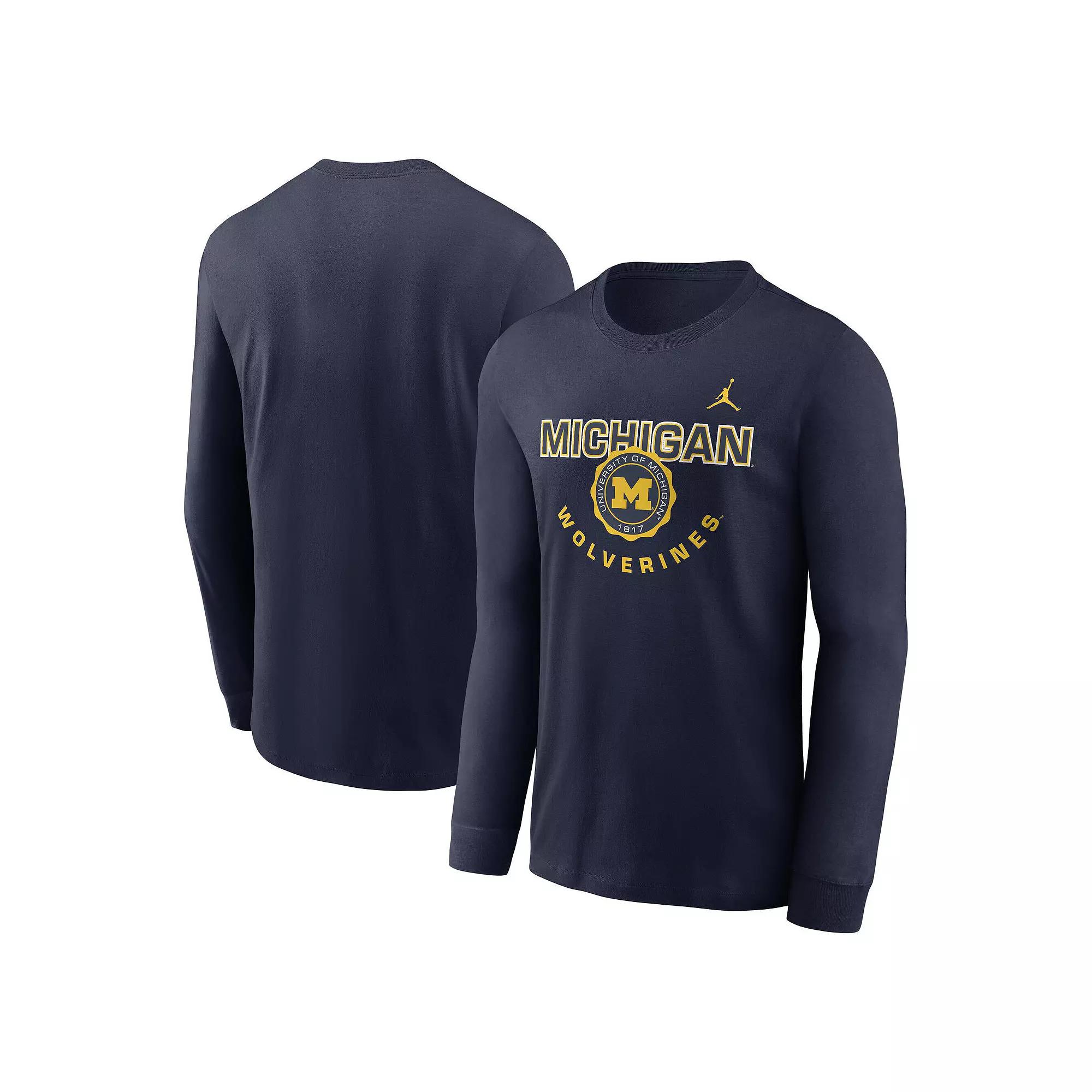 Elevate your Michigan Wolverines game day look with this Slogan Long Sleeve T-Shirt from Nike. This long-sleeve tee provides a soft and comfortable feel, making it perfect for all-day wear. The screen print graphics showcase your Michigan Wolverines pride with lasting durability. Whether you're at the game or watching from home, this tee has you covered in style and comfort.Elevate your Michigan Wolverines game day look with this Slogan Long Sleeve T-Shirt from Nike. This long-sleeve tee provides a soft and comfortable feel, making it perfect for all-day wear. The screen print graphics showcase your Michigan Wolverines pride with lasting durability. Whether you're at the game or watching from home, this tee has you covered in style and comfort.PRODUCT FEATURESBrand: NikeCrew neckLong sleeveImportedMachine wash, tumble dry lowOfficially licensedMaterial: 100% CottonRib-knit cuffs for a durable stretchScreen print graphics Color: Team. Gender: male. Age Group: adult.