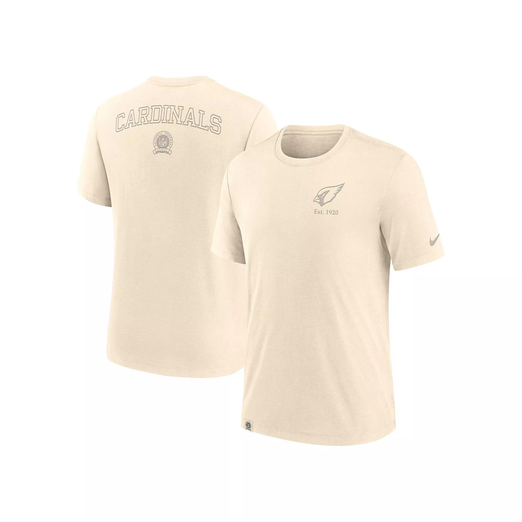Match your clean style and Arizona Cardinals fandom with this Glory Tri-Blend T-Shirt by Nike. The monochrome team details create a versatile look for game day or casual outings. Tri-blend material provides an extra-soft, lightweight feel that makes this Arizona Cardinals tee a favorite option.Match your clean style and Arizona Cardinals fandom with this Glory Tri-Blend T-Shirt by Nike. The monochrome team details create a versatile look for game day or casual outings. Tri-blend material provides an extra-soft, lightweight feel that makes this Arizona Cardinals tee a favorite option.PRODUCT FEATURESImportedBrand: NikeTonal team details screen printed on the front and backOfficially licensedStandard Fit: Easy and traditionalMachine wash, tumble dry lowMaterial: 50% Polyester/25% Cotton/25% RayonCrew neckShort sleeveJersey fabric has a lightweight feel (160gsm) Color: Beige. Gender: male. Age Group: adult.