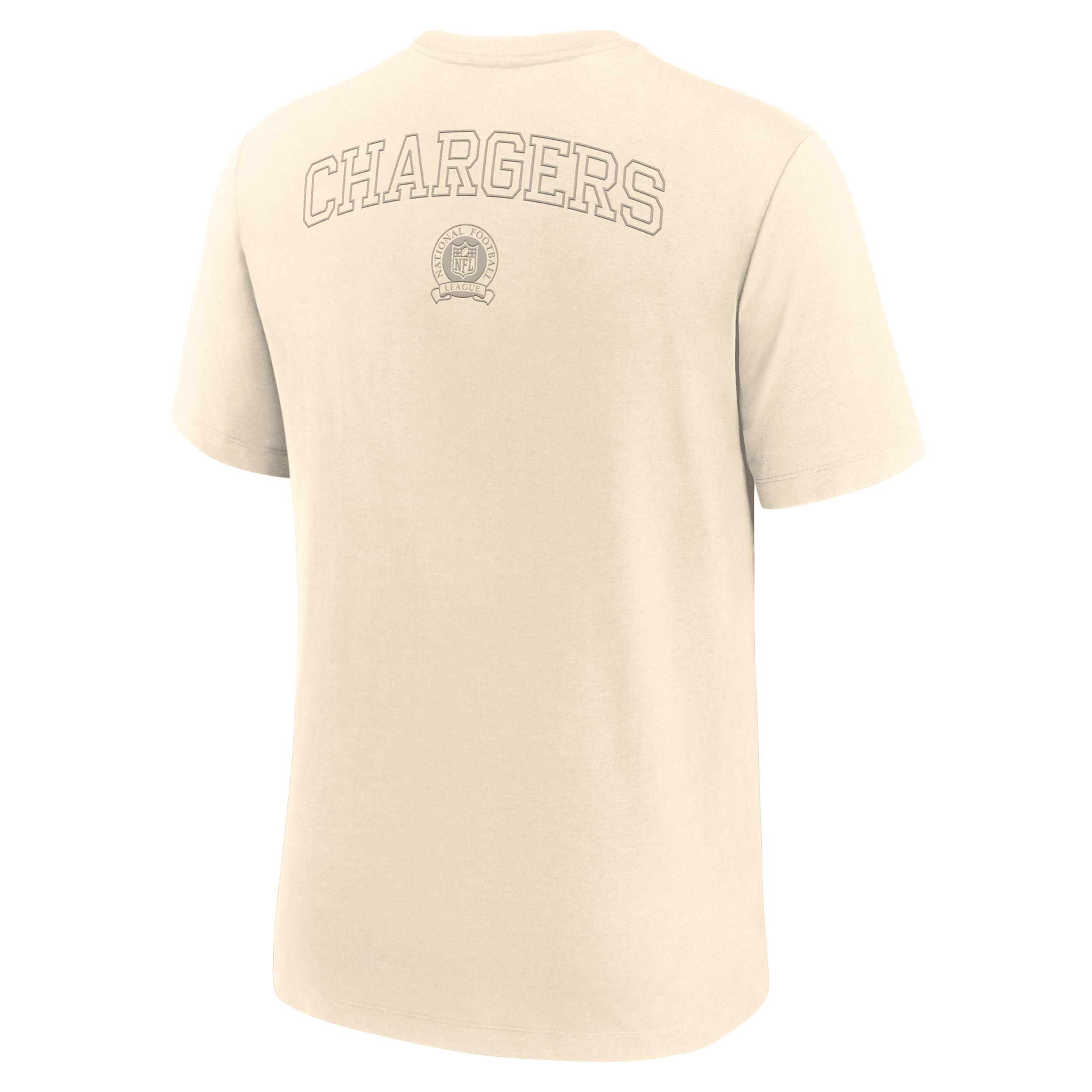 Match your clean style and Los Angeles Chargers fandom with this Glory Tri-Blend T-Shirt by Nike. The monochrome team details create a versatile look for game day or casual outings. Tri-blend material provides an extra-soft, lightweight feel that makes this Los Angeles Chargers tee a favorite option.Match your clean style and Los Angeles Chargers fandom with this Glory Tri-Blend T-Shirt by Nike. The monochrome team details create a versatile look for game day or casual outings. Tri-blend material provides an extra-soft, lightweight feel that makes this Los Angeles Chargers tee a favorite option.PRODUCT FEATURESShort sleeveMachine wash, tumble dry lowStandard Fit: Easy and traditionalBrand: NikeTonal team details screen printed on the front and backImportedMaterial: 50% Polyester/25% Cotton/25% RayonOfficially licensedCrew neckJersey fabric has a lightweight feel (160gsm) Color: Beige. Gender: male. Age Group: adult.