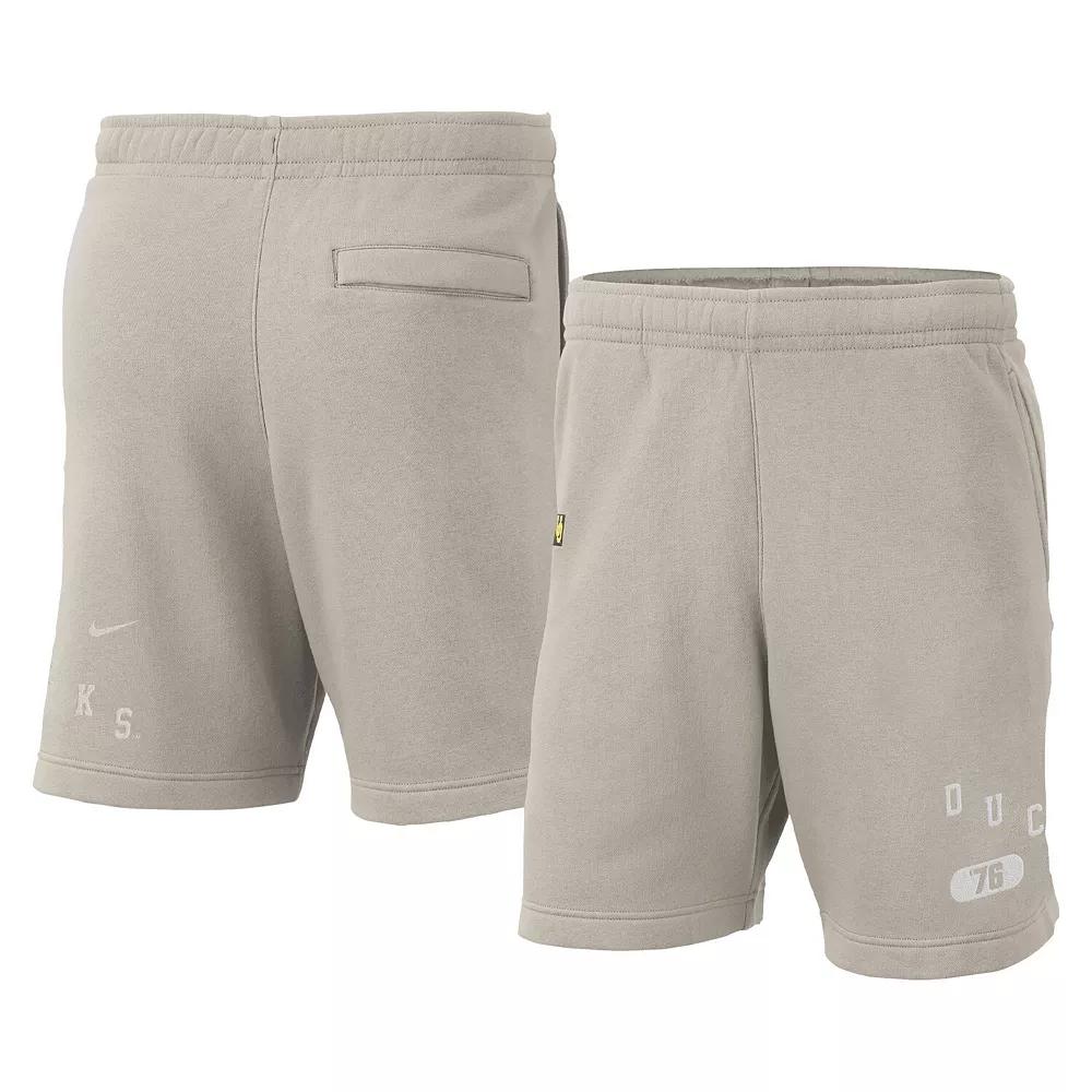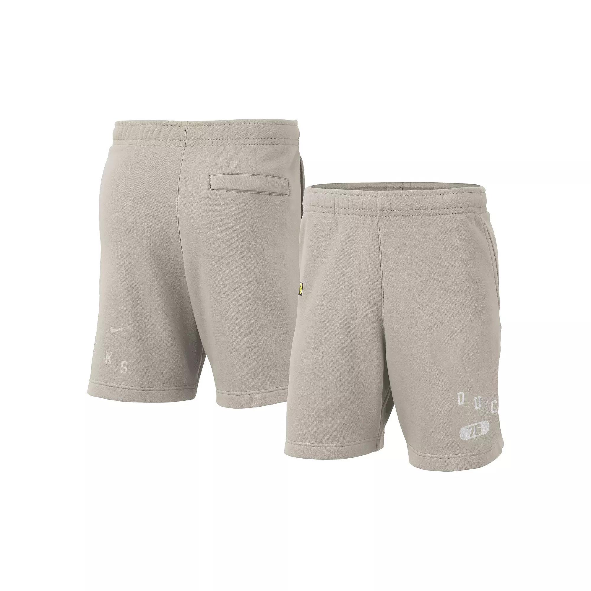 Soft, cozy and perfect for any casual occasion, our classic-fit Oregon shorts just might become one of your everyday favorites. Made with midweight brushed fleece, they feel extra soft on the inside and smooth on the outside. Subtle team details let you show out for the Ducks in comfort. Product Details: Elastic waistband with drawcord. Clamp label at right pocket. Side and back pockets. Body: 80% cotton/20%polyester. Side pocket knuckle side/back pocket: 100% cotton. Machine wash. Imported. Style: DR4358; Color: Cream II/Apple Green; Size: XL; Gender: Male; Age Group: Adult | Oregon Men's Nike College Fleece Shorts in Brown, Size: XL | DR4358-236