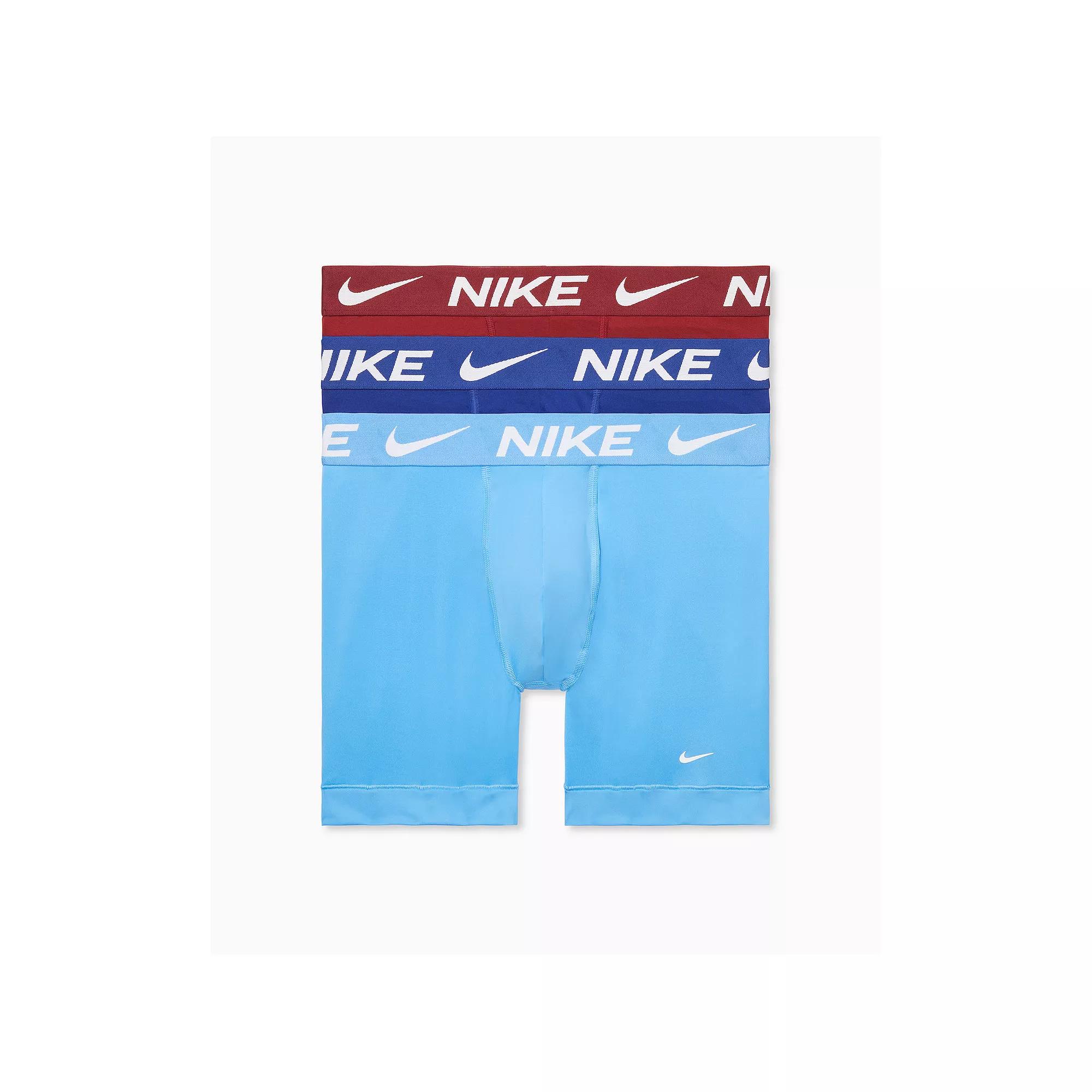 Classic comfort. Thanks to their performance design, these men's Nike microfiber boxer briefs keep you comfortable all day long. Click on this MEN'S GUIDE to find the perfect fit and more! Classic comfort. Thanks to their performance design, these men's Nike microfiber boxer briefs keep you comfortable all day long. Click on this MEN'S GUIDE to find the perfect fit and more! 3-pack Nike Dri-FIT technology helps you stay dry and comfortable Smooth, stretch microfiber construction providesr ease of movement Flat seams Made with recycled materials Signature banded leg hem No flyFIT & SIZING Regular fit 6-inch approximate inseamFABRIC & CARE 92% recycled polyester, 8% elastane Machine wash ImportedSUSTAINABILITY FEATURES Tested for harmful substances Contains recycled materials Contains recycled polyester Certification No. 17.HLK.25608 STANDARD 100 by OEKO-TEX® CERTIFIED www.oeko-tex.com/standard100 Testing Institute: Hohenstein Textile Testing Institute Color: Blueberry. Gender: male. Age Group: adult.