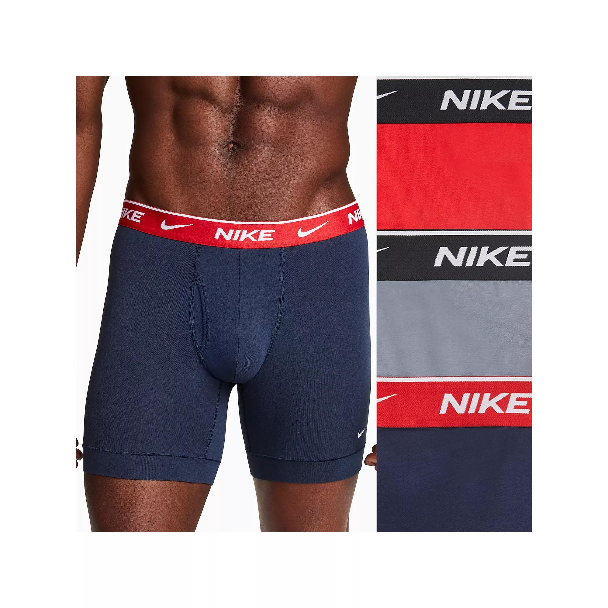 Soft and stretchy material Dri-FIT technology keeps you dry and comfortable Elasticized Nike waistband Front fly 3 pairs per pack 95% cotton, 5% elastane Machine wash The Nike Stretch Cotton Boxer Briefs (3-Pack) are imported. Comfort can be yours every day when you wear the Mens Nike Stretch Cotton Boxer Briefs (3-Pack). Featuring soft and stretchy material and Nikes Dri-FIT technology, youll never want to wear anything else. Size: Small. Color: Red/Blue/Grey. Gender: male. Age Group: adult. Nike Mens Stretch Boxer Briefs (3-Pack) in Red/Blue/Grey/Obsidian Size Small Cotton