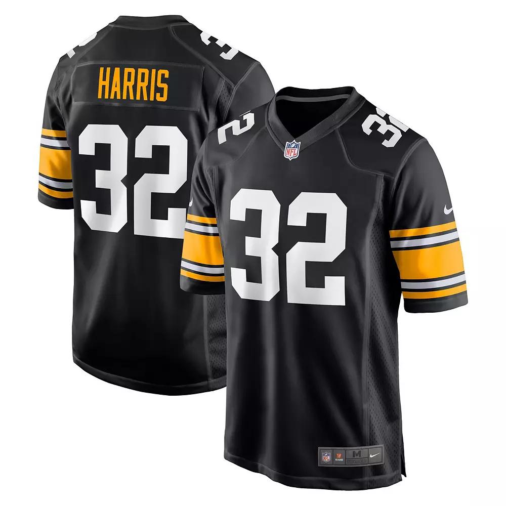 From the Immaculate Reception to four Super Bowl titles, Franco Harris will forever be regarded as an all-time great in the NFL. Remember his legacy with this Pittsburgh Steelers Franco Harris Alternate Retired Player Jersey from Nike. The Pittsburgh Steelers graphics will let you represent your favorite team and player anywhere you go.From the Immaculate Reception to four Super Bowl titles, Franco Harris will forever be regarded as an all-time great in the NFL. Remember his legacy with this Pittsburgh Steelers Franco Harris Alternate Retired Player Jersey from Nike. The Pittsburgh Steelers graphics will let you represent your favorite team and player anywhere you go.PRODUCT FEATURESDesigned for movementNike GameSewn-on NFL Shield at collar and satin twill woven jock tag at hemImportedJersey Color Style: AlternateSide splits at hemMaterial: 100% Polyester TricotBrand: NikeMachine wash, tumble dry lowMesh side panels for extra breathabilityShort sleeveScreen print name, numbers and team detailsOfficially licensed Color: Black. Gender: male. Age Group: adult.