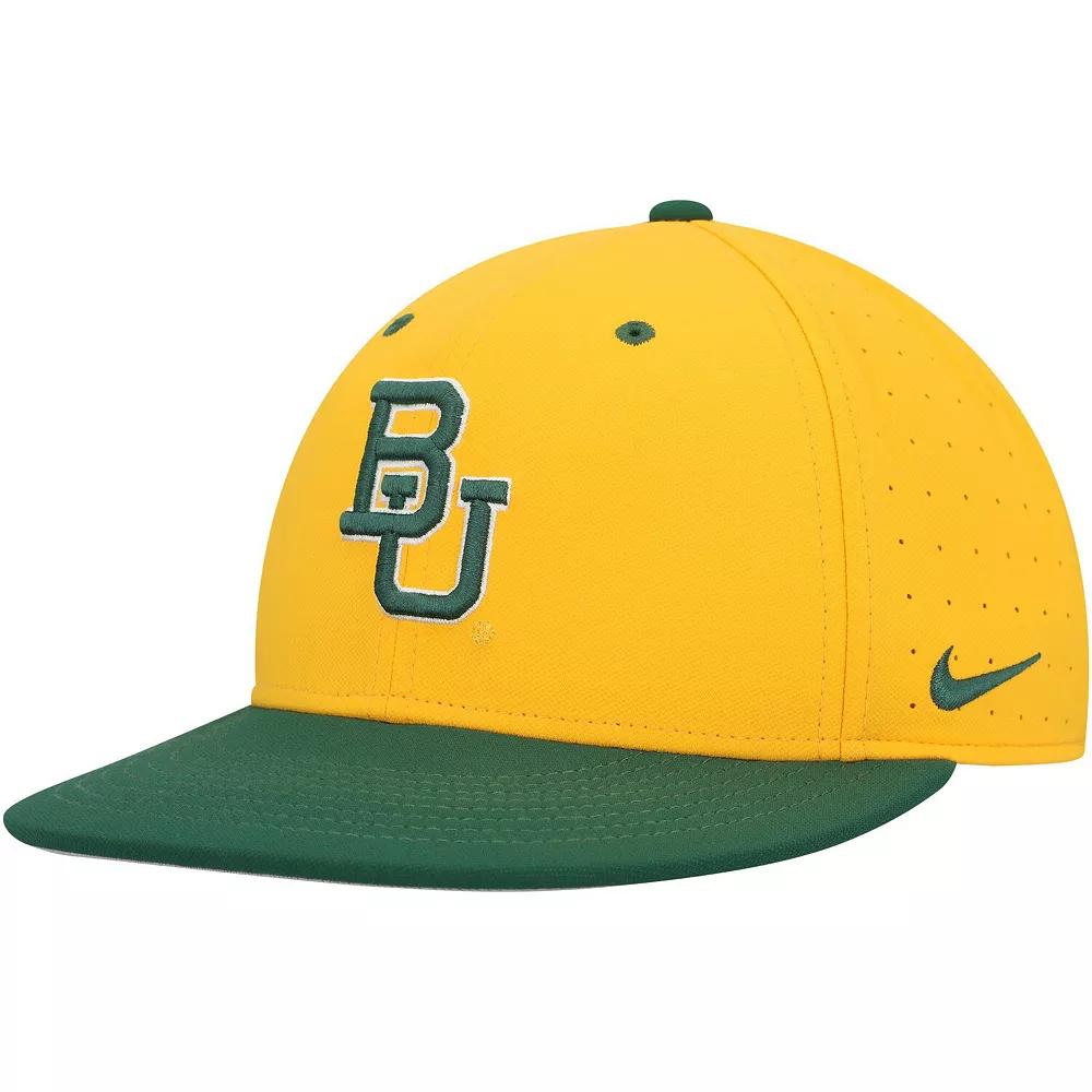 Emulate your style after your favorite Baylor Bears players with this Aero True Baseball fitted hat from Nike. It features Dri-FIT technology to evaporate sweat while the AeroBill technology and perforated panels provide a breathable, fresh feeling. Plus, the striking Baylor Bears design leaves no doubt about your team loyalty.Emulate your style after your favorite Baylor Bears players with this Aero True Baseball fitted hat from Nike. It features Dri-FIT technology to evaporate sweat while the AeroBill technology and perforated panels provide a breathable, fresh feeling. Plus, the striking Baylor Bears design leaves no doubt about your team loyalty.PRODUCT FEATURESSublimated camo designFittedAeroBill technology wicks sweat away and provides lightweight breathabilityHigh CrownStructured fitOfficially licensedTwo solid front panels with eyeletsMaterial: 100% Polyester - Body; 92% Polyester/8% Cotton - Back of Front Panel; 100% Cotton - UndervisorBrand: NikeDri-FIT technology wicks away moistureContrast-color undervisorFour perforated mid and rear panelsWipe clean with a damp clothImportedFlat bill with ability to curveEmbroidered graphics with raised details Size: 7 5/8. Color: Gold. Gender: male. Age Group: adult.
