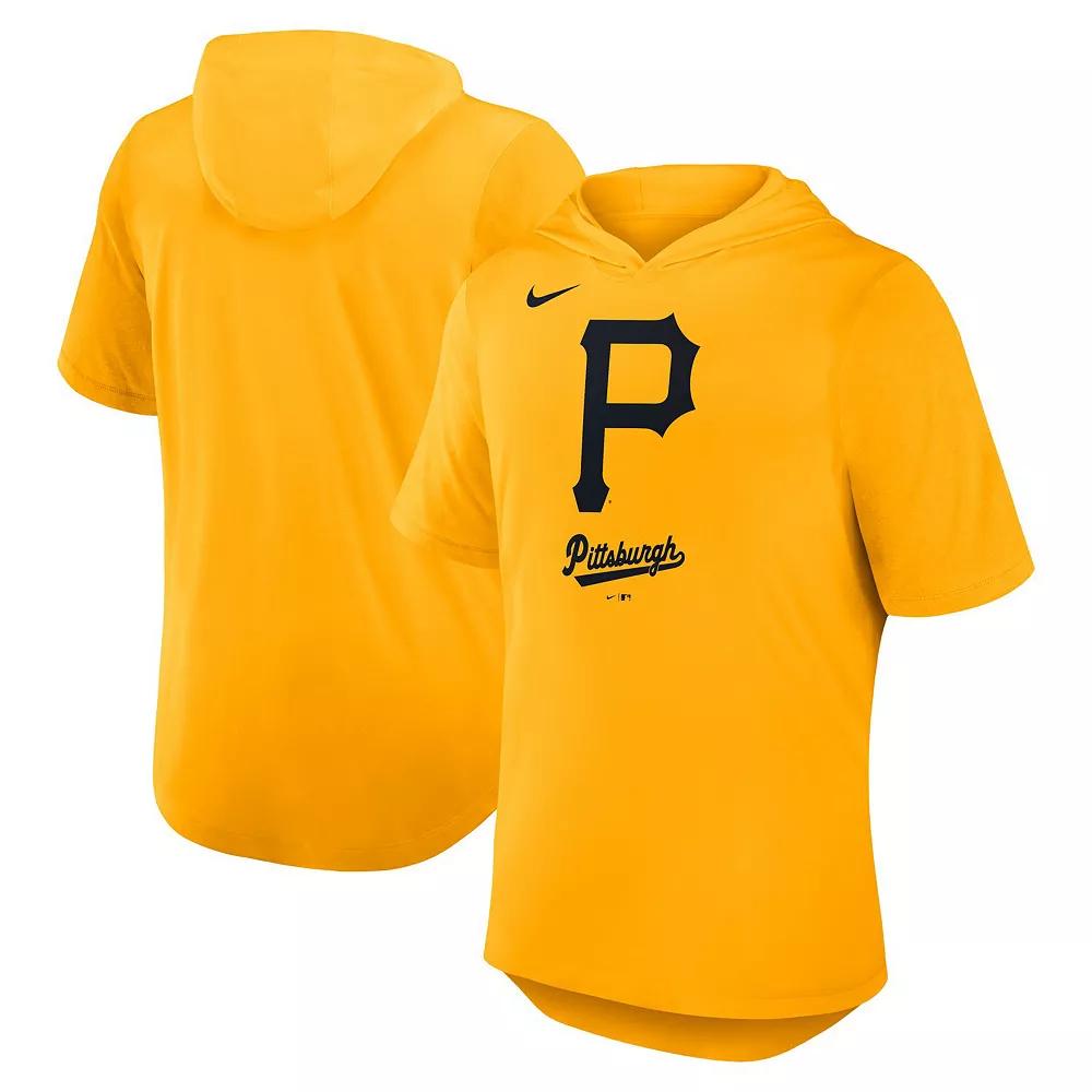 Nike combines the comfort of a hoodie and the breathability of a tee with this Pittsburgh Pirates Tri-Blend Performance Hoodie T-Shirt. It features team details printed on extra-soft tri-blend material. The hood adds lightweight coverage to this solid Pittsburgh Pirates tee.Nike combines the comfort of a hoodie and the breathability of a tee with this Pittsburgh Pirates Tri-Blend Performance Hoodie T-Shirt. It features team details printed on extra-soft tri-blend material. The hood adds lightweight coverage to this solid Pittsburgh Pirates tee.PRODUCT FEATURESMove To Zero apparel labeled sustainable materials is made with at least 50% recycled content as part of Nike's journey toward a zero carbon and zero waste futureOfficially licensedImportedMachine wash, tumble dry lowHoodedBrand: NikeStandard Fit: Easy and traditionalRounded droptail hemJersey fabric has a lightweight feel (150gsm)Team name and logo screen printed on the chestShort sleeveMaterial: 75% Polyester/13% Rayon/12% Cotton Size: XL. Color: Gold. Gender: male. Age Group: adult.