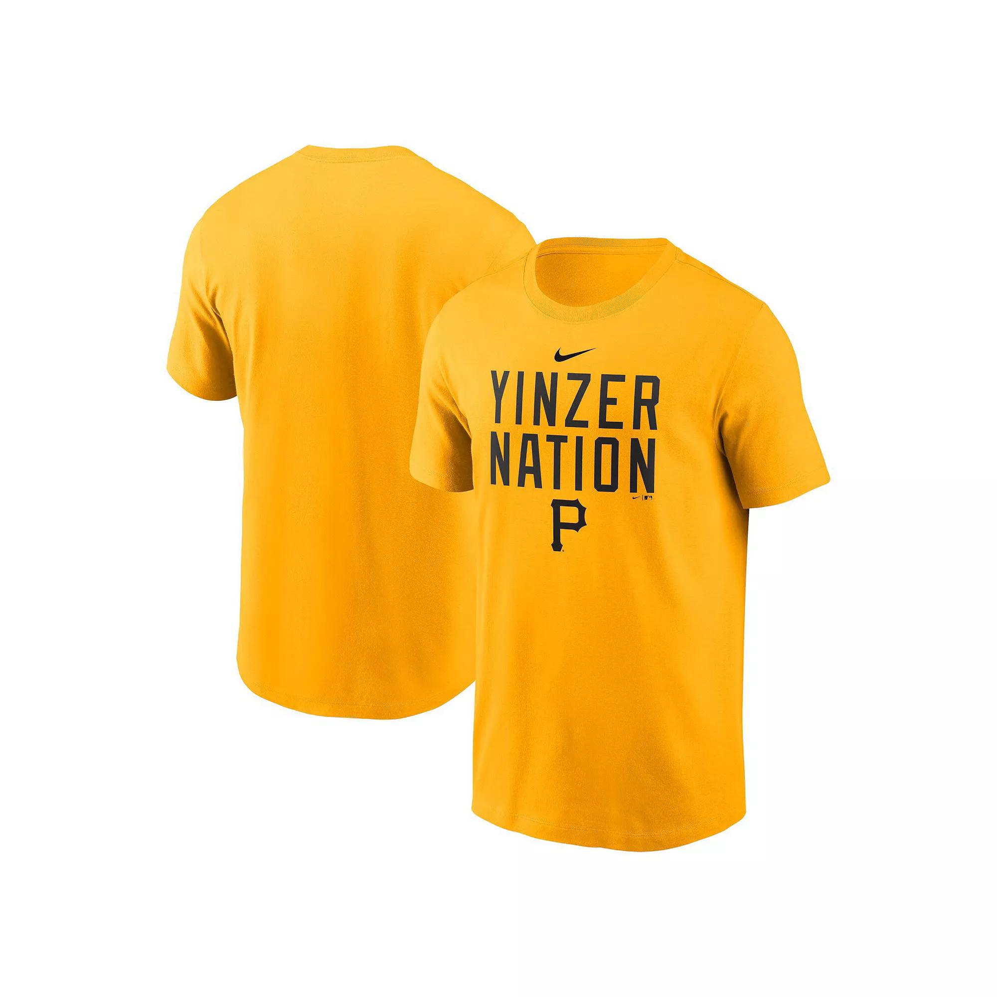 Show off your unwavering Pittsburgh Pirates pride by grabbing this Yinzer Nation Local T-shirt from Nike. It offers a super-soft fabric for comfort and a crew neck design for easy matching with your other gear. Plus, the vibrant Pittsburgh Pirates graphics let everyone know you are a true team fan.Show off your unwavering Pittsburgh Pirates pride by grabbing this Yinzer Nation Local T-shirt from Nike. It offers a super-soft fabric for comfort and a crew neck design for easy matching with your other gear. Plus, the vibrant Pittsburgh Pirates graphics let everyone know you are a true team fan.PRODUCT FEATURESCrew neckShort sleeveImportedOfficially licensedMachine wash, tumble dry lowScreen print graphicsBrand: NikeMaterial: 100% Cotton Color: Gold. Gender: male. Age Group: adult.