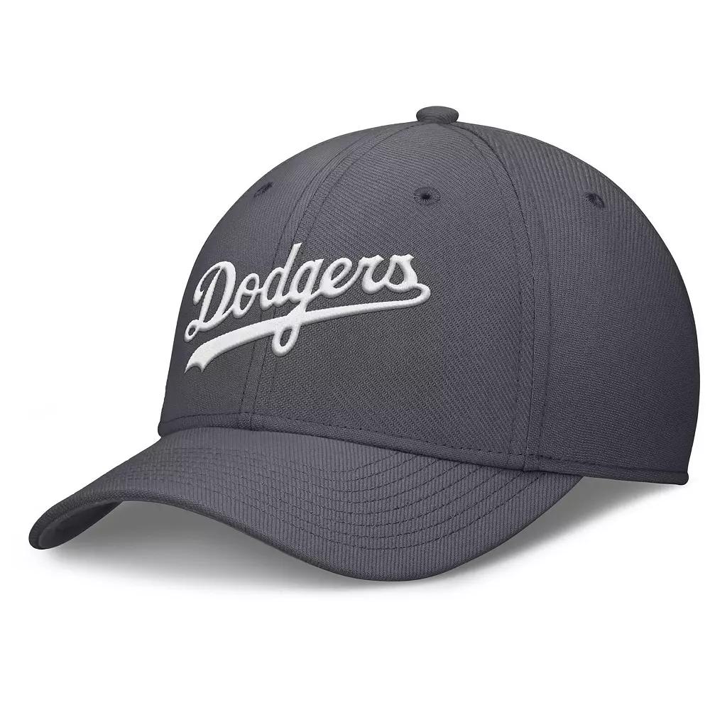 Support your Los Angeles Dodgers with this Swoosh Performance Flex Hat from Nike. This Los Angeles Dodgers hat features the teams wordmark prominently displayed across the front, making it clear who youre rooting for. With six panels and strategically placed eyelets, this hat provides excellent ventilation to keep your head cool and comfortable all game long.Support your Los Angeles Dodgers with this Swoosh Performance Flex Hat from Nike. This Los Angeles Dodgers hat features the teams wordmark prominently displayed across the front, making it clear who youre rooting for. With six panels and strategically placed eyelets, this hat provides excellent ventilation to keep your head cool and comfortable all game long.PRODUCT FEATURESBrand: NikeStructured fitMid CrownCurved billOfficially licensedTeam wordmark across frontWipe clean with a damp clothSix panels with eyelets for ventilationStretch fitOne size fits mostImportedMaterial: 100% Polyester Size: S/M. Color: Grey. Gender: male. Age Group: adult. Material: COTTON.