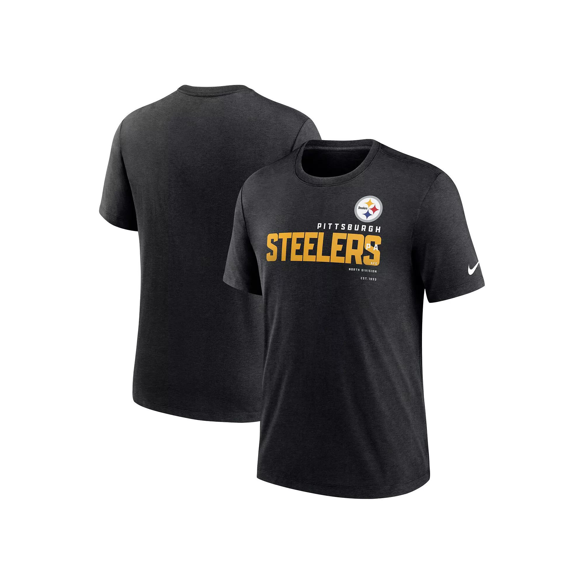 Comfortable and filled with team spirit, this Nike Team tee is perfect for game day. It features bold Pittsburgh Steelers graphics across the chest that put your fandom front and center. Tri-blend fabric offers supreme softness.Comfortable and filled with team spirit, this Nike Team tee is perfect for game day. It features bold Pittsburgh Steelers graphics across the chest that put your fandom front and center. Tri-blend fabric offers supreme softness.Brand: NikeImportedOfficially licensedCrew neckScreen print graphicsShort sleeveMachine wash, tumble dry lowMaterial: 50% Cotton/25% Polyester/25% Rayon Color: Charcoal. Gender: male. Age Group: adult.