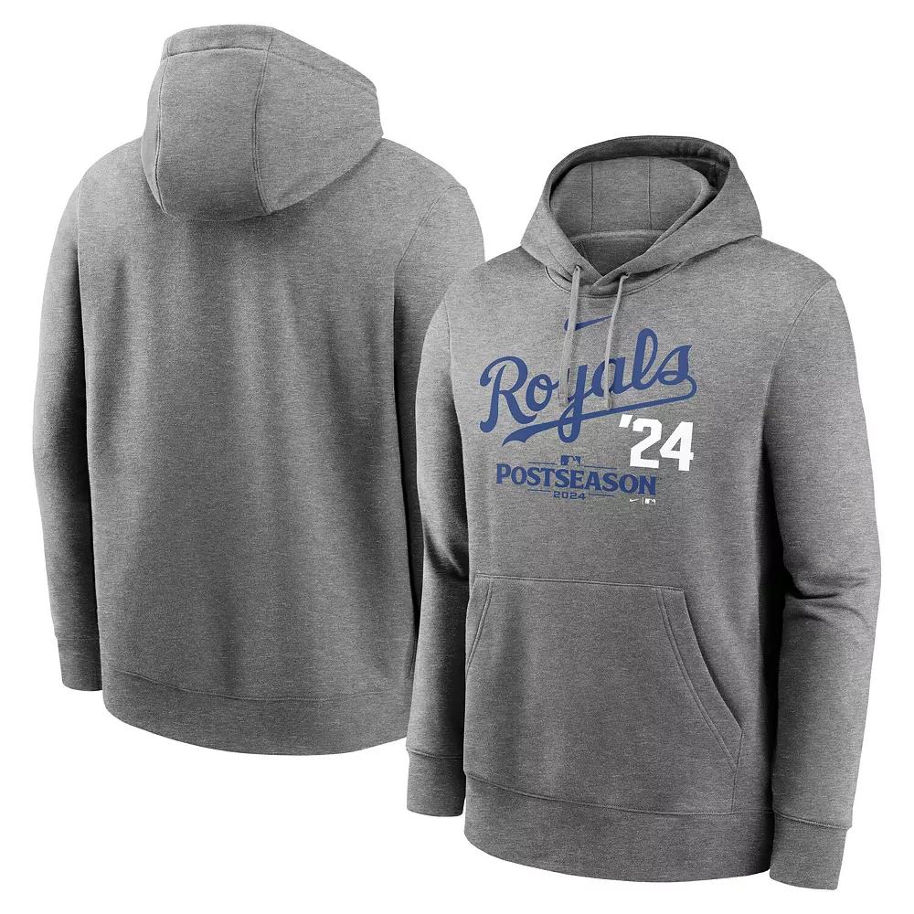 Celebrate the Kansas City Royals with this Nike 2024 MLB Postseason Lockup Club Fleece Pullover Hoodie. Featuring a cozy fleece lining, this midweight hoodie is perfect for moderate temperatures. Its front pouch pocket provides convenient storage for all of your essentials. Whether youre cheering from the stands or simply showing your support, this hoodie is the ultimate way to represent the Kansas City Royals.Celebrate the Kansas City Royals with this Nike 2024 MLB Postseason Lockup Club Fleece Pullover Hoodie. Featuring a cozy fleece lining, this midweight hoodie is perfect for moderate temperatures. Its front pouch pocket provides convenient storage for all of your essentials. Whether youre cheering from the stands or simply showing your support, this hoodie is the ultimate way to represent the Kansas City Royals.PRODUCT FEATURESImportedMaterial: 82% Cotton/18% PolyesterFront pouch pocket to store your essentialsMachine wash, tumble dry lowRib-knit hem and sleeve cuffs for a snug fitPulloverMidweight hoodie suitable for moderate temperaturesOfficially licensedHoodedBrand: NikeScreen print graphics on chestCozy fleece lining for added warmth and comfortLong sleeve Color: Charco. Gender: male. Age Group: adult.
