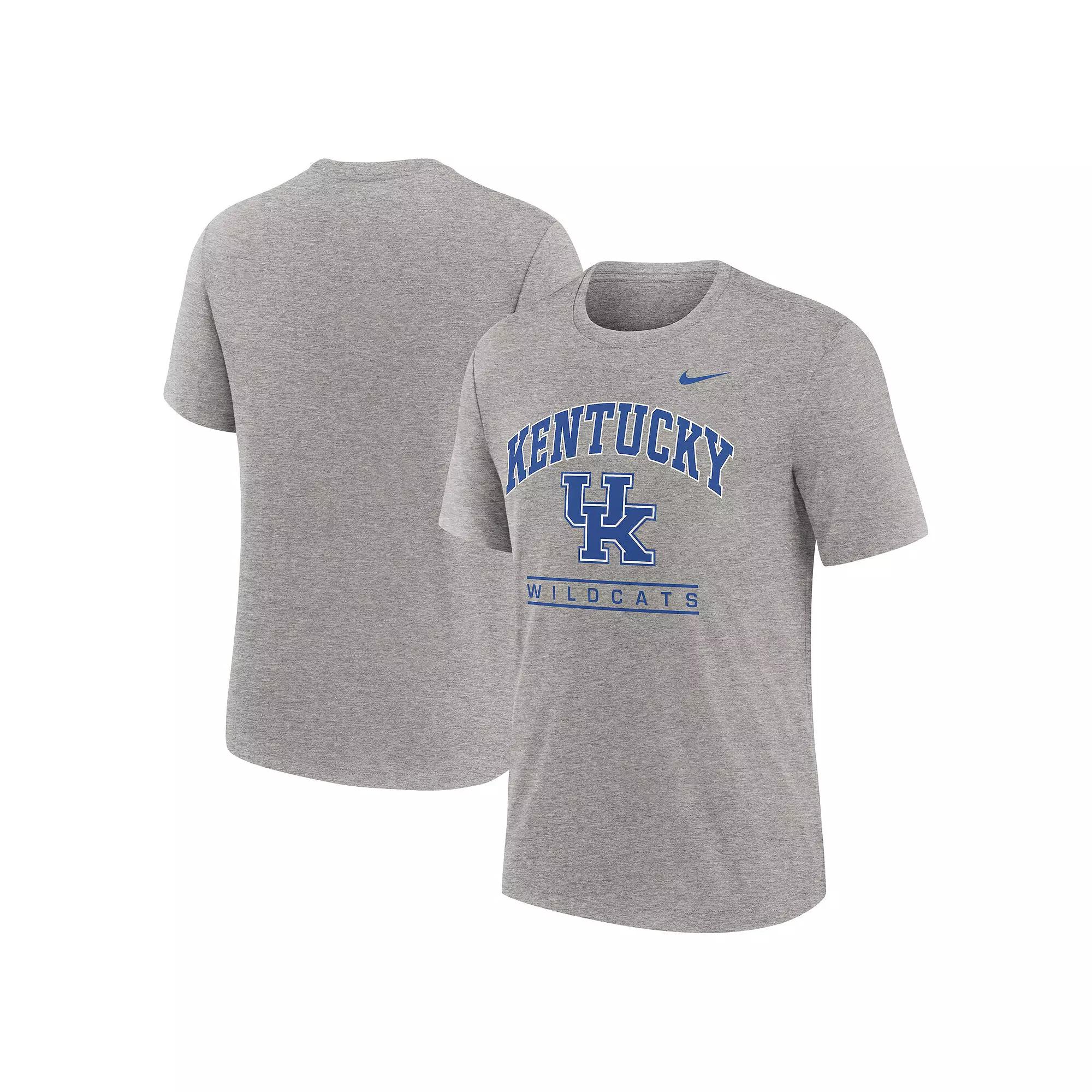 Showcase your Kentucky Wildcats pride with this subtle yet spirited Nike Arch Over Logo Tri-Blend T-Shirt. The arched wordmark printed above the Kentucky Wildcats logo creates an unapologetically spirited look that's sure to turn heads. The tri-blend fabric offers unbeatable comfort and a soft feel that makes this tee ideal for all-day wear.Showcase your Kentucky Wildcats pride with this subtle yet spirited Nike Arch Over Logo Tri-Blend T-Shirt. The arched wordmark printed above the Kentucky Wildcats logo creates an unapologetically spirited look that's sure to turn heads. The tri-blend fabric offers unbeatable comfort and a soft feel that makes this tee ideal for all-day wear.PRODUCT FEATURESBlended fabric for a soft feel and added durabilityMaterial: 50% Cotton/38% Polyester/12% RayonArched wordmark printed above team logo across the torsoCrew neckMachine wash, tumble dry lowOfficially licensedBrand: NikeShort sleeveImportedScreen print graphics Size: XL. Color: Grey. Gender: male. Age Group: adult.