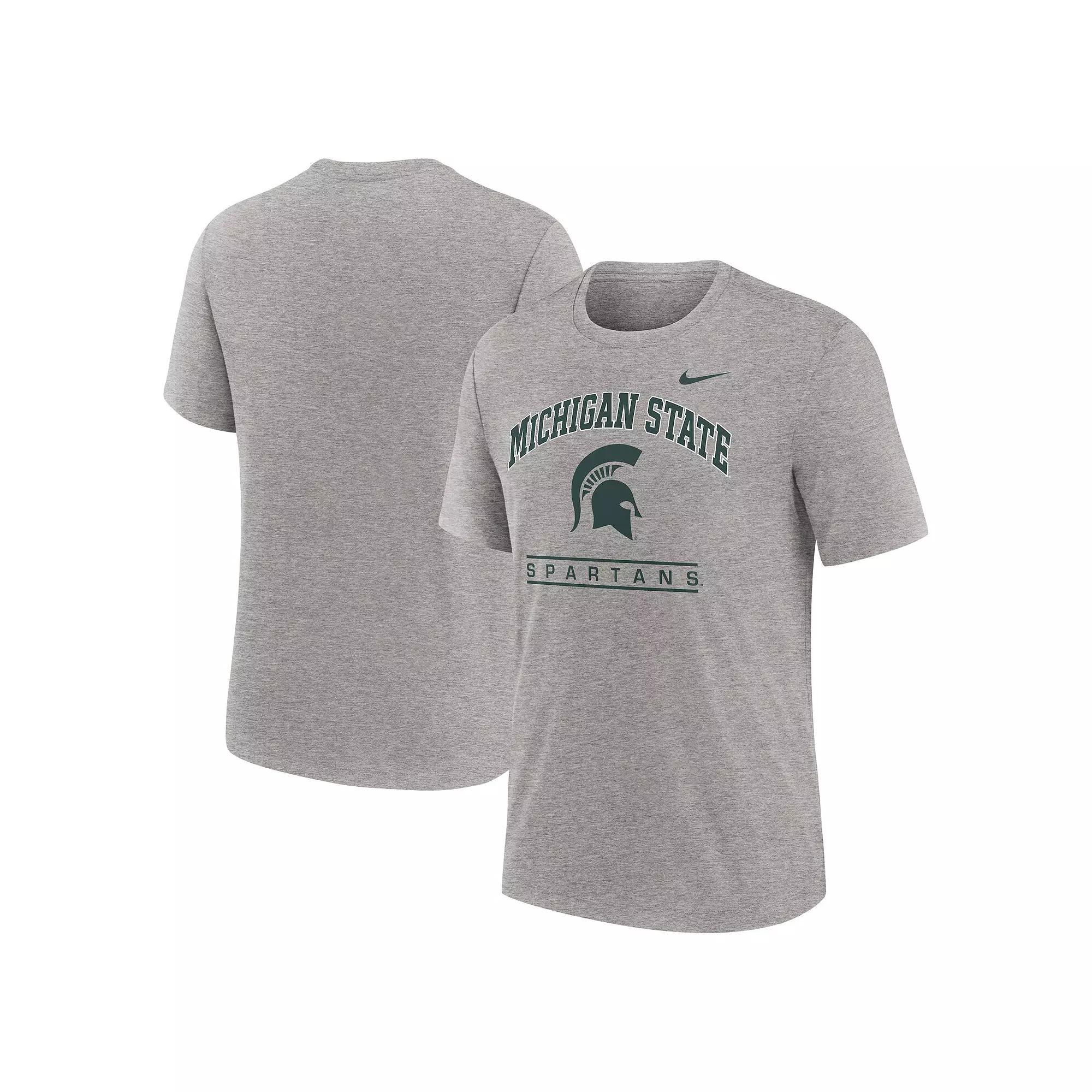 Showcase your Michigan State Spartans pride with this subtle yet spirited Nike Arch Over Logo Tri-Blend T-Shirt. The arched wordmark printed above the Michigan State Spartans logo creates an unapologetically spirited look that's sure to turn heads. The tri-blend fabric offers unbeatable comfort and a soft feel that makes this tee ideal for all-day wear.Showcase your Michigan State Spartans pride with this subtle yet spirited Nike Arch Over Logo Tri-Blend T-Shirt. The arched wordmark printed above the Michigan State Spartans logo creates an unapologetically spirited look that's sure to turn heads. The tri-blend fabric offers unbeatable comfort and a soft feel that makes this tee ideal for all-day wear.PRODUCT FEATURESMaterial: 50% Cotton/38% Polyester/12% RayonScreen print graphicsShort sleeveBlended fabric for a soft feel and added durabilityOfficially licensedImportedCrew neckMachine wash, tumble dry lowBrand: NikeArched wordmark printed above team logo across the torso Color: Grey. Gender: male. Age Group: adult.