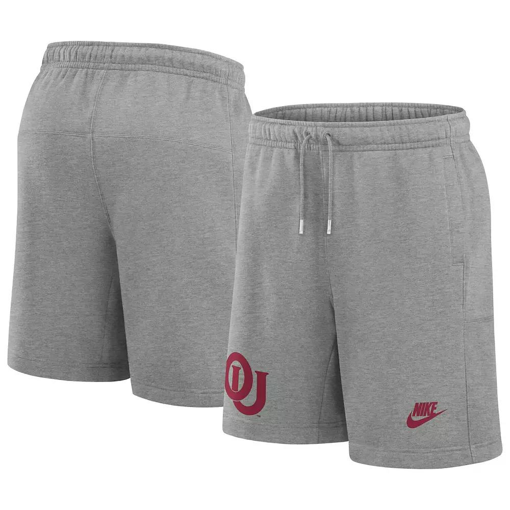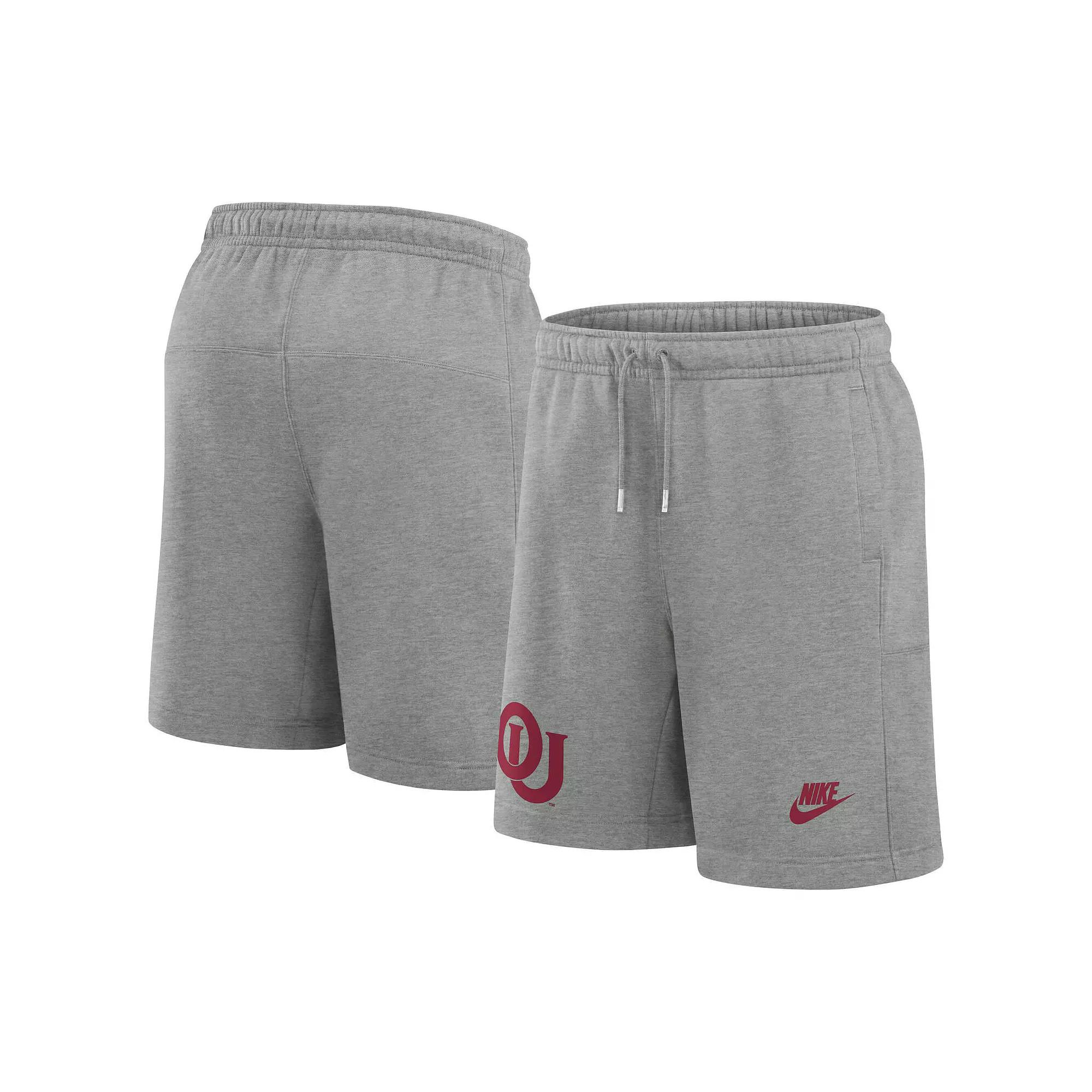 Stay comfortable while repping your Oklahoma Sooners pride in these Nike Legacy Fleece Essential Shorts. Show your team pride with these comfortable fleece shorts, perfect for relaxing on game day or any day. These cozy fleece shorts are perfect for any Oklahoma Sooners fan looking to relax in style while representing their favorite college team.Stay comfortable while repping your Oklahoma Sooners pride in these Nike Legacy Fleece Essential Shorts. Show your team pride with these comfortable fleece shorts, perfect for relaxing on game day or any day. These cozy fleece shorts are perfect for any Oklahoma Sooners fan looking to relax in style while representing their favorite college team.PRODUCT FEATURESElastic waistbandMachine wash, tumble dry lowMaterial: 80% Cotton/20% PolyesterOfficially licensedBrand: NikeImportedFleece lining for added comfortHeat sealed graphicsTwo side slip pockets Color: Grey. Gender: male. Age Group: adult.