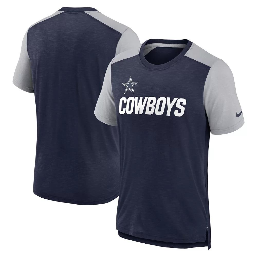 Make your Dallas Cowboys fandom more noticeable with this Color Block Team Name T-shirt from Nike. Its two-tone design catches the eye and emphasizes the Dallas Cowboys graphics printed across the chest. Split hems also provide a more comfortable fit and feel.Make your Dallas Cowboys fandom more noticeable with this Color Block Team Name T-shirt from Nike. Its two-tone design catches the eye and emphasizes the Dallas Cowboys graphics printed across the chest. Split hems also provide a more comfortable fit and feel.Material: 75% Cotton/25% PolyesterOfficially licensedScreen print graphicsShort sleeveMachine wash, tumble dry lowImportedDroptail hem with side splitsBrand: NikeCrew neck Color: Navy. Gender: male. Age Group: adult.