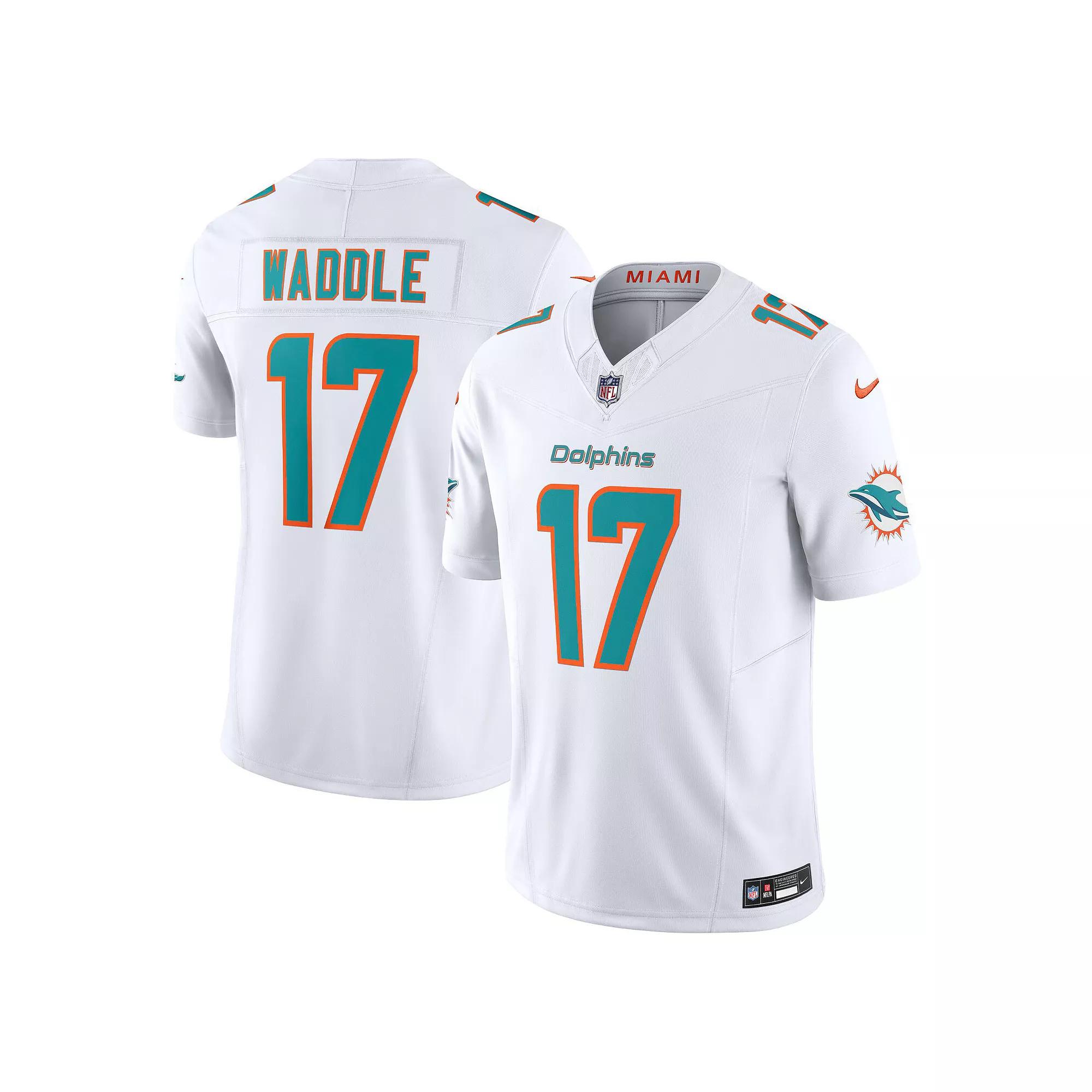 Walking into the stadium, you feel a rush of energy pass over you. You adjust your Miami Dolphins Limited jersey and feel yourself getting swept up in all the electricity of the game. This Nike jersey features the state-of-the-art Vapor F.U.S.E. chassis, which delivers an incredibly authentic look and feel so that you might even believe youre out on the field with the Miami Dolphins. The twill name and number graphics will ensure that your devotion to Jaylen Waddle is seen by everyone in the stadium. Dri-FIT fabric technology keeps you cool as youre jumping up and down while the Miami Dolphins win the game.Walking into the stadium, you feel a rush of energy pass over you. You adjust your Miami Dolphins Limited jersey and feel yourself getting swept up in all the electricity of the game. This Nike jersey features the state-of-the-art Vapor F.U.S.E. chassis, which delivers an incredibly authentic look and feel so that you might even believe youre out on the field with the Miami Dolphins. The twill name and number graphics will ensure that your devotion to Jaylen Waddle is seen by everyone in the stadium. Dri-FIT fabric technology keeps you cool as youre jumping up and down while the Miami Dolphins win the game.PRODUCT FEATURESMaterial: 100% PolyesterImportedStandard fitChainmaille mesh grill and metallic-effect NFL Shield at collarHeat-sealed twill player name and numbersShort sleeveVapor F.U.S.E. chassis delivers an authentic look and feel on game daySatin woven jock tagEmbroidered team detailsJersey Color Style: WhiteDri-FIT technology wicks away moistureMachine wash, tumble dry lowOfficially licensedNike LimitedBrand: Nike Size: 3XL. Gender: male. Age Group: adult.
