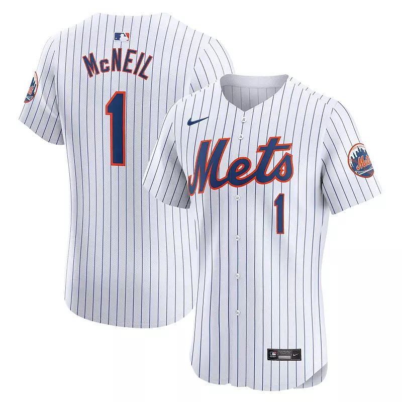 This Jeff McNeil Home Elite Player Jersey displays an authentic look to show off on game day and keeps you comfortable beyond the last out. Crafted by Nike using the lightweight comfort of stretch mesh fabric, it features the same premium details as the official on-field design of your New York Mets. The innovative Vapor Premier chassis allows for more flexible movement and teams up with Dri-FIT ADV technology to deliver exceptional sweat-wicking power.This Jeff McNeil Home Elite Player Jersey displays an authentic look to show off on game day and keeps you comfortable beyond the last out. Crafted by Nike using the lightweight comfort of stretch mesh fabric, it features the same premium details as the official on-field design of your New York Mets. The innovative Vapor Premier chassis allows for more flexible movement and teams up with Dri-FIT ADV technology to deliver exceptional sweat-wicking power.PRODUCT FEATURESRounded hemNike EliteShort sleeveOfficially licensedMaterial: 95% Recycled Polyester/5% Elastane Stretch MeshMachine wash, line dryFull-button frontVapor Premier chassis improves mobility, enhances moisture management and provides a lightweight fit with additional stretchDri-FIT technology wicks away moistureSewn-down tackle twill logo or wordmark, playe rname and numbers and sleeve patch (where applicable)Embroidered Swoosh logoHeat-applied woven MLB Batterman and jock tagBrand: NikeNike Elite jersey delivers the same look worn by the pros on the fieldMove To Zero is Nikes journey toward zero carbon and zero waste to help protect the future of sport. Apparel labeled sustainable materials is made with at least 55% recycled contentJersey Color Style: HomeImportedAthletic cut Size: 44. Color: White. Gender: male. Age Group: adult. Material: COTTON.