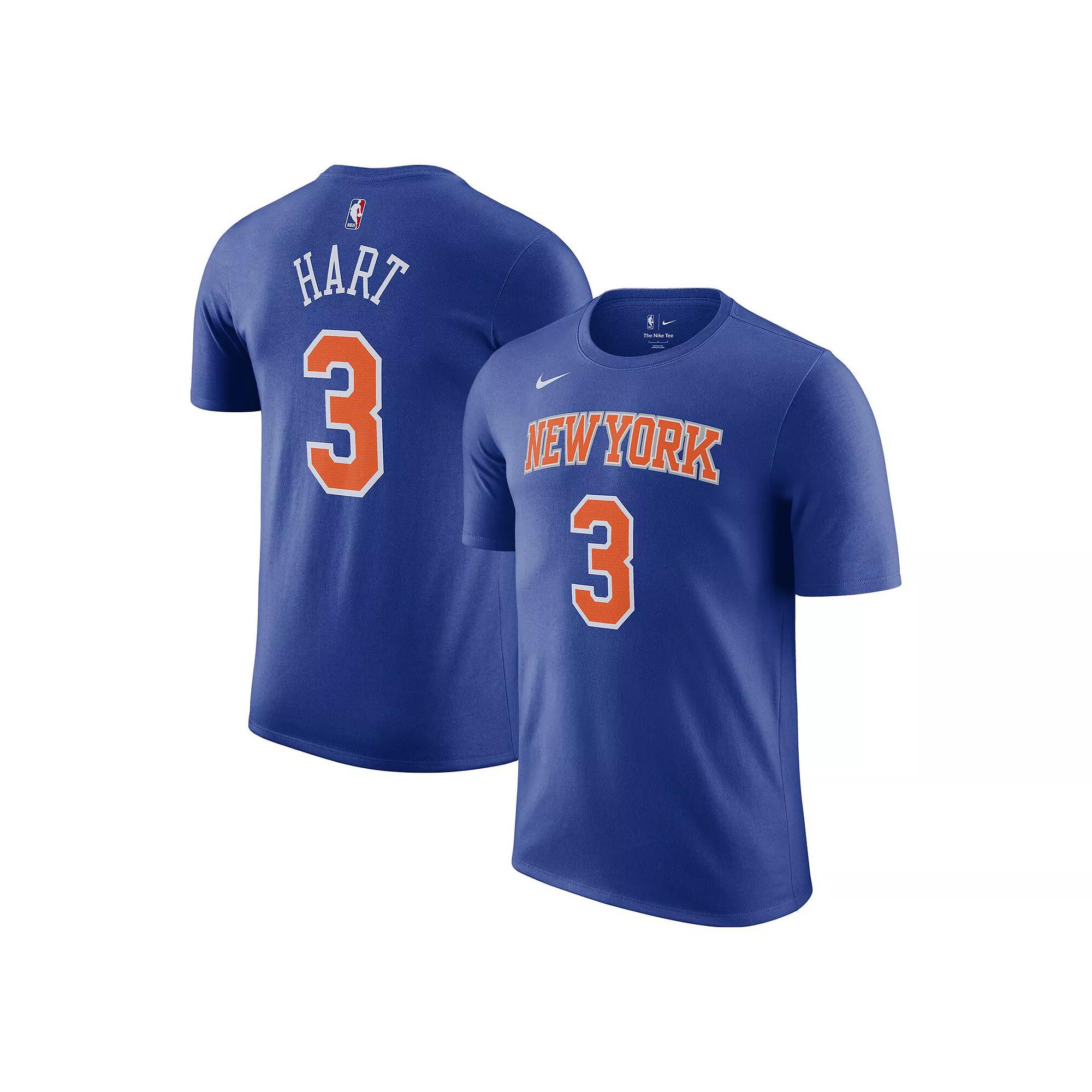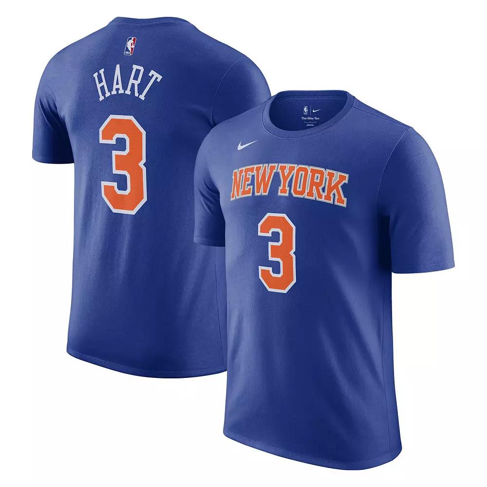 This Josh Hart Icon Edition Name and Number T-shirt from Nike is the perfect way to show your New York Knicks fandom and stay casual on game day. The cotton material keeps you comfortable as you cheer for your favorite player on the hardwood. The bold graphics make it clear that your loyalty lies with Josh Hart and the New York Knicks.This Josh Hart Icon Edition Name and Number T-shirt from Nike is the perfect way to show your New York Knicks fandom and stay casual on game day. The cotton material keeps you comfortable as you cheer for your favorite player on the hardwood. The bold graphics make it clear that your loyalty lies with Josh Hart and the New York Knicks.PRODUCT FEATURESImportedJersey Color Style: IconMachine wash, tumble dry lowBrand: NikeMaterial: 100% CottonOfficially licensedCrew neckScreen print graphics Color: Blue. Gender: male. Age Group: adult.