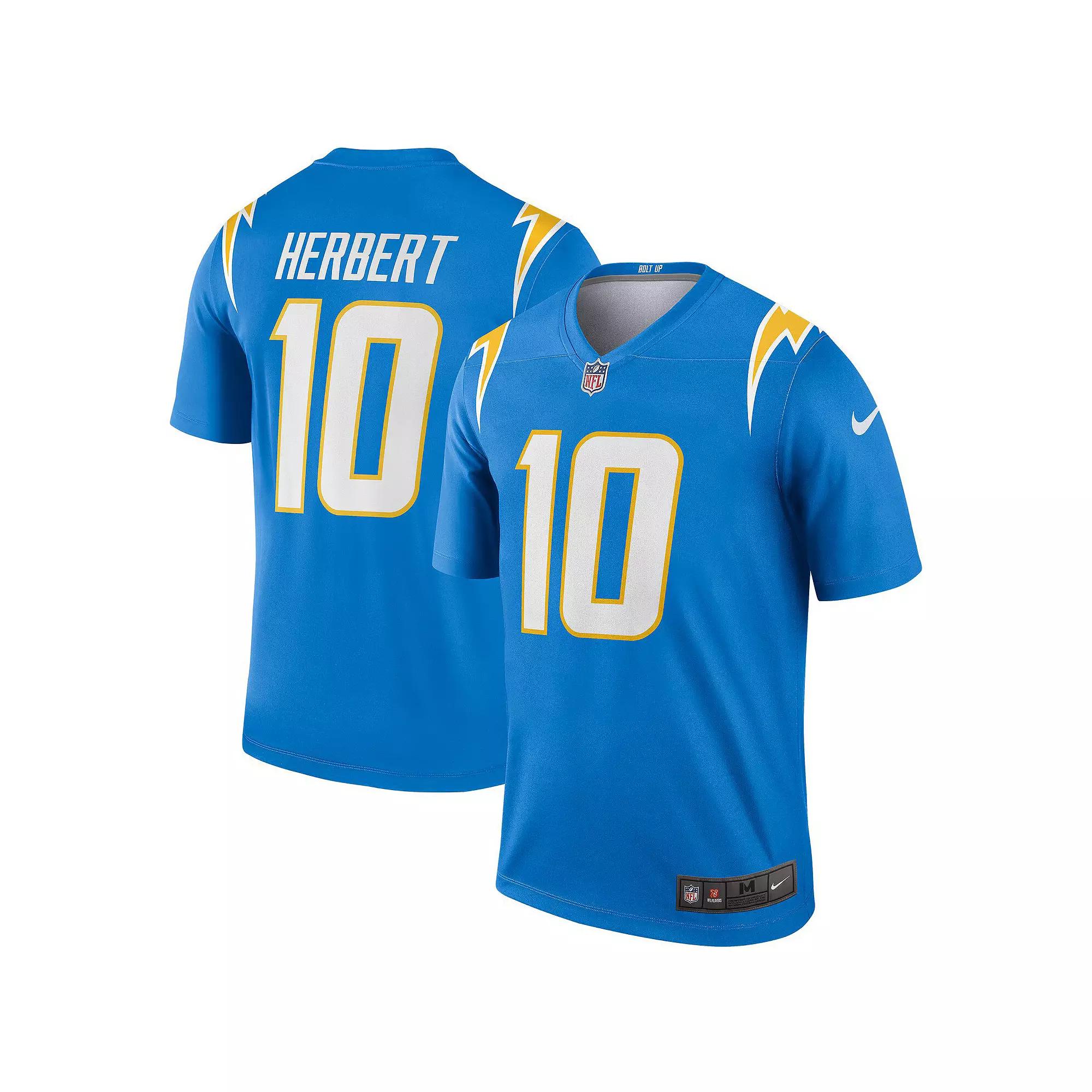 Capture your teams distinct identity when you grab this Los Angeles Chargers Justin Herbert Legend Jersey from Nike. It features classic Los Angeles Chargers graphics to show who you support. Before you head to the next Los Angeles Chargers game, grab this incredible jersey so everyone knows your fandom is on full display.Capture your teams distinct identity when you grab this Los Angeles Chargers Justin Herbert Legend Jersey from Nike. It features classic Los Angeles Chargers graphics to show who you support. Before you head to the next Los Angeles Chargers game, grab this incredible jersey so everyone knows your fandom is on full display.PRODUCT FEATURESFit: Mens Nike Legend Jerseys have a Standard Fit thats not too tight and not too loose. Designed with a relaxed fit through shoulders, chest and waist.Material: 100% PolyesterNike Dry fabrics move sweat from your skin for quicker evaporation helping you stay dry, comfortable and focused on the task at handDri-FIT technology wicks away moistureFully sublimated pique body fabric for lightweight comfortBackneck taping - no irritating stitch on the back neckJock tagStitched down NFL shield at front neckStreamlined fitMachine washOfficially licensedImportedBrand: Nike Size: XL. Color: Light Blue. Gender: male. Age Group: adult.