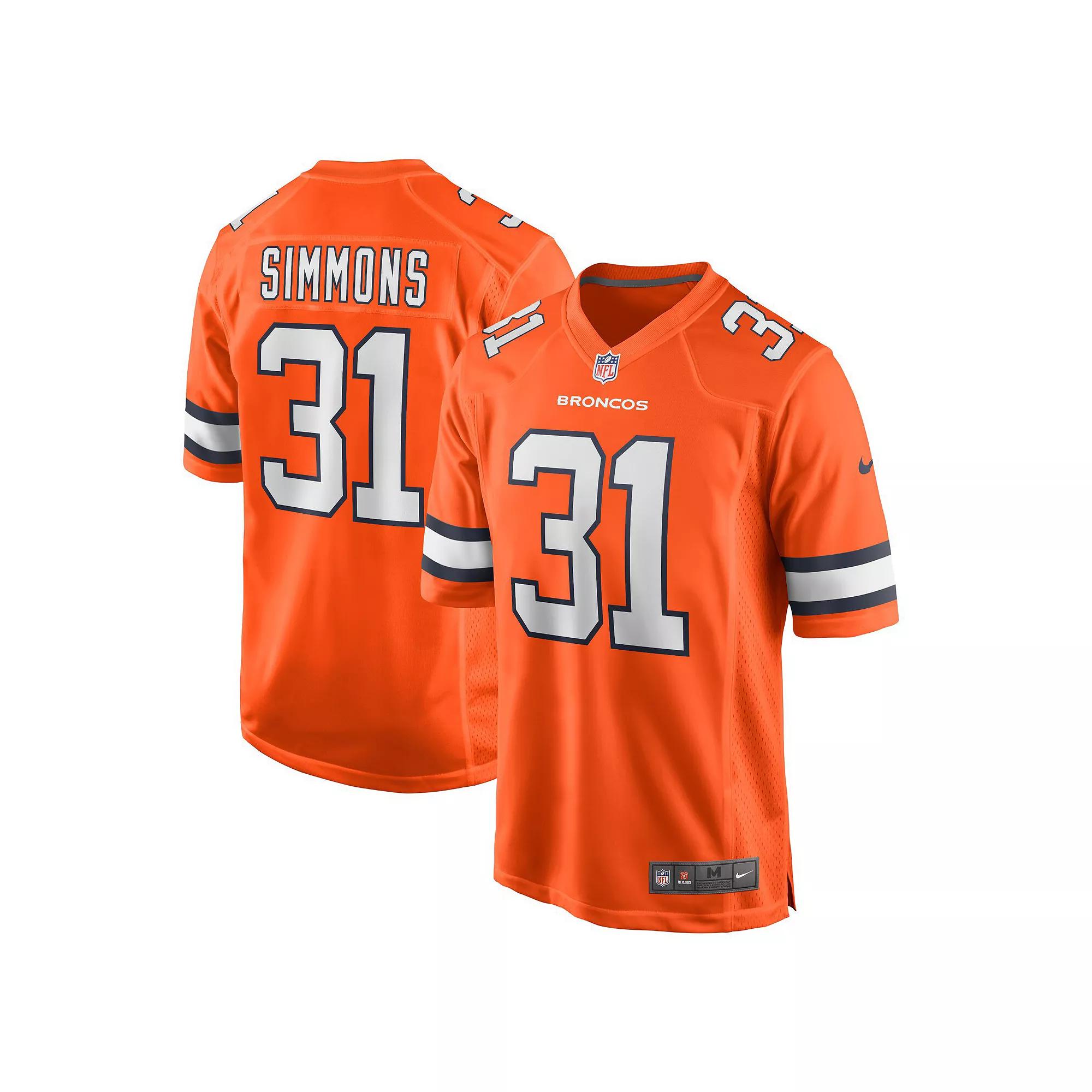 When Justin Simmons is on the field, opposing teams take notice, so showcase your admiration of one of the top players in the NFL with this exclusive Denver Broncos Game jersey from Nike. Complete with mesh panels for extra breathability, this jersey replicates the authentic one that Justin Simmons wears every Sunday, giving you the perfect piece of gear for every Denver Broncos game this season.When Justin Simmons is on the field, opposing teams take notice, so showcase your admiration of one of the top players in the NFL with this exclusive Denver Broncos Game jersey from Nike. Complete with mesh panels for extra breathability, this jersey replicates the authentic one that Justin Simmons wears every Sunday, giving you the perfect piece of gear for every Denver Broncos game this season.PRODUCT FEATURESBrand: NikeDesigned for movementImportedMachine wash with garment inside out, tumble dry lowMaterial: 100% Recycled PolyesterMesh side panels for extra breathabilityOfficially licensedSatin twill woven jock tag at hemScreen print name, numbers and logosSewn-on NFL Shield at collar Short sleeveSide splits at hemTagless Collar Size: 2XL. Color: Orange. Gender: male. Age Group: adult.