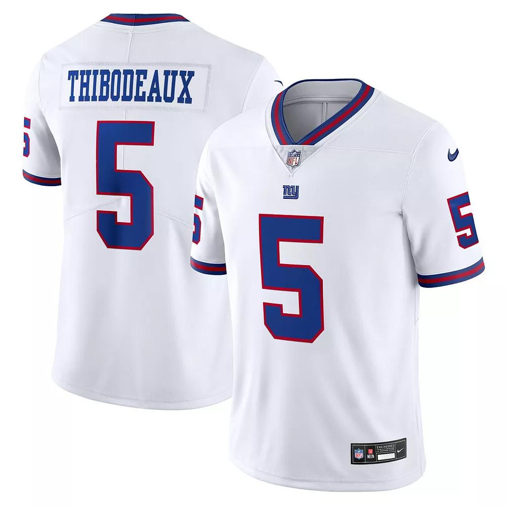 The NFL New York Giants Nike Vapor Untouchable Jersey delivers an authentic touch on game day. Sweat-wicking technology and sublimated detailing help provide continuous comfort as you rep your favorite player. Benefits: Nike Dri-FIT technology moves sweat away from your skin for quicker evaporation, helping you stay dry and comfortable. Vapor Untouchable chassis with fewer seams and limited panels. Sublimated details add breathability. Ventilation over major heat zones helps keep you cool. Product Details: Standard fit for a relaxed, easy feel. NFL shield at V-neck. Tagless neck label. Laser-cut embossed jock tag. 100% polyester. Machine wash. Imported. Style: 32NM08C58IF; Color: White; Size: M; Gender: Male; Age Group: Adult | Kayvon Thibodeaux New York Giants Men's Nike NFL Limited Jersey in White, Size: Medium | 32NM08C58IF-RZ0