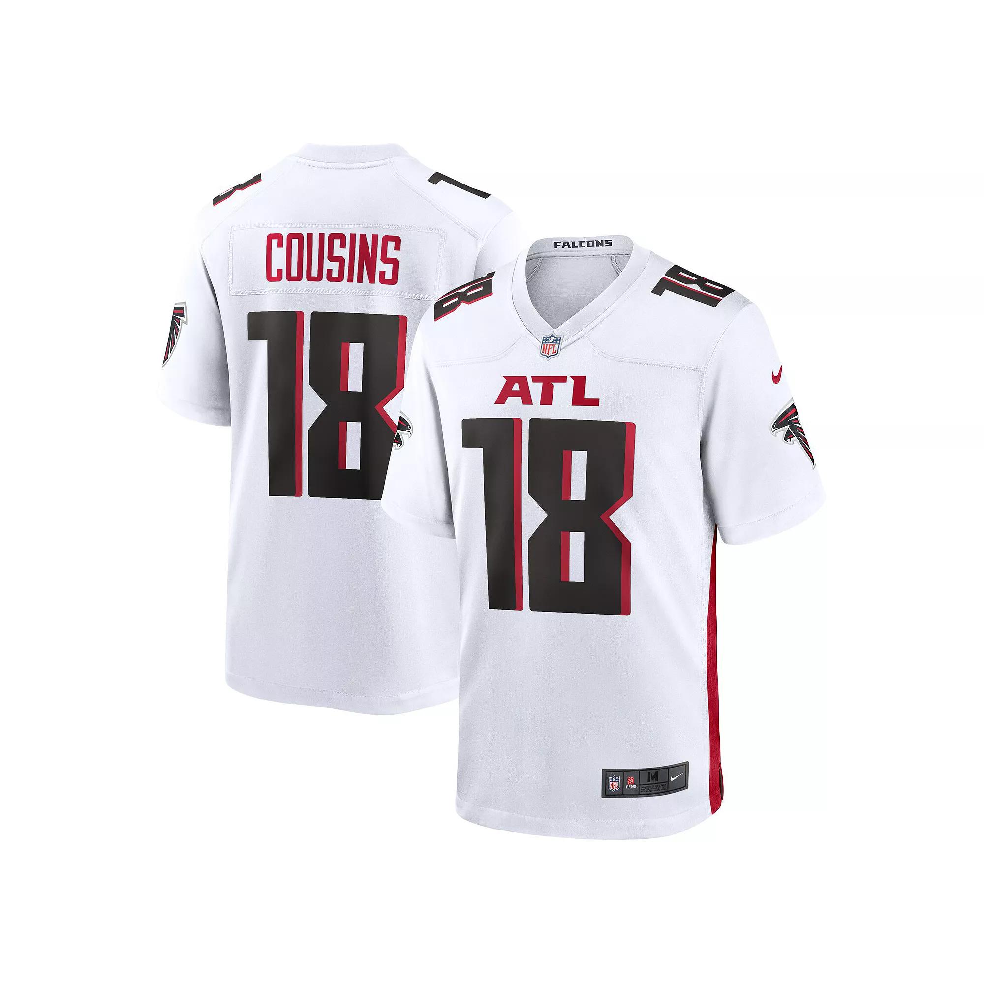 There is no better way to express your excitement for Atlanta Falcons game day than by rocking the jersey of your favorite player. Add a new go-to option to your collection with this Kirk Cousins Game Player Jersey from Nike. The kickoff-ready Atlanta Falcons colors and detailing will help to instantly elevate your selection of gear.There is no better way to express your excitement for Atlanta Falcons game day than by rocking the jersey of your favorite player. Add a new go-to option to your collection with this Kirk Cousins Game Player Jersey from Nike. The kickoff-ready Atlanta Falcons colors and detailing will help to instantly elevate your selection of gear.PRODUCT FEATURESJersey Color Style: WhiteSatin woven jock tagMesh side panels for extra breathabilityMachine wash, tumble dry lowMove To Zero is Nikes journey toward zero carbon and zero waste to help protect the future of sport. Apparel labeled sustainable materials is made with at least 55% recycled content.Material: 100% Polyester TricotDesigned for movementShort sleeveLoose fitScreen print name, numbers and team detailsStitched NFL Shield at collarSide splits at hemNike GameImportedBrand: NikeOfficially licensed Size: 3XL. Gender: male. Age Group: adult.