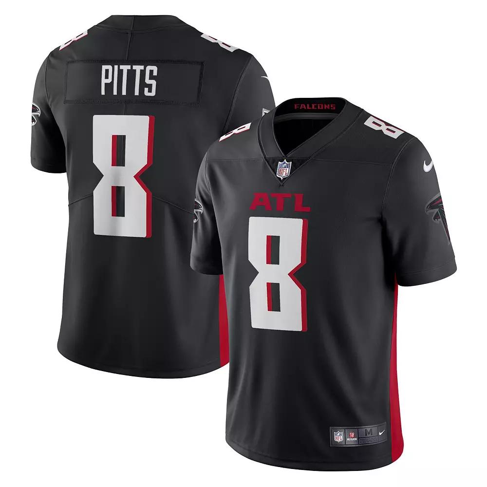 Ensure youre outfitted properly for the next Atlanta Falcons game by grabbing this Kyle Pitts Vapor Limited Player jersey. This Nike gear features dynamic Atlanta Falcons graphics that will show off your die-hard devotion for both the team and Kyle Pitts. The Nike Dry and Dri-FIT fabric technologies will keep you feeling your best while you cheer your team to a victory.Ensure youre outfitted properly for the next Atlanta Falcons game by grabbing this Kyle Pitts Vapor Limited Player jersey. This Nike gear features dynamic Atlanta Falcons graphics that will show off your die-hard devotion for both the team and Kyle Pitts. The Nike Dry and Dri-FIT fabric technologies will keep you feeling your best while you cheer your team to a victory.PRODUCT FEATURESMachine wash with garment inside out, tumble dry lowOfficially licensedImportedBrand: NikeTagless CollarFit: Mens Nike Limited Jerseys have a Standard Fit, not too tight and not too loose. We recommend ordering one size larger than you normally wear for a looser fit or up two sizes if you plan on layering underneath the jersey.Nike Dry fabrics move sweat from your skin for quicker evaporation helping you stay dry, comfortable and focused on the task at handDri-FIT technology wicks away moistureSatin twill woven jock tagScreen print team accentsShort sleevesMaterial: 100% Recycled Polyester Body; 100% Polyester Front InsetNFL shield at collarStitched tackle twill name and numbersV-neck Color: Black. Gender: male. Age Group: adult. Material: COTTON.