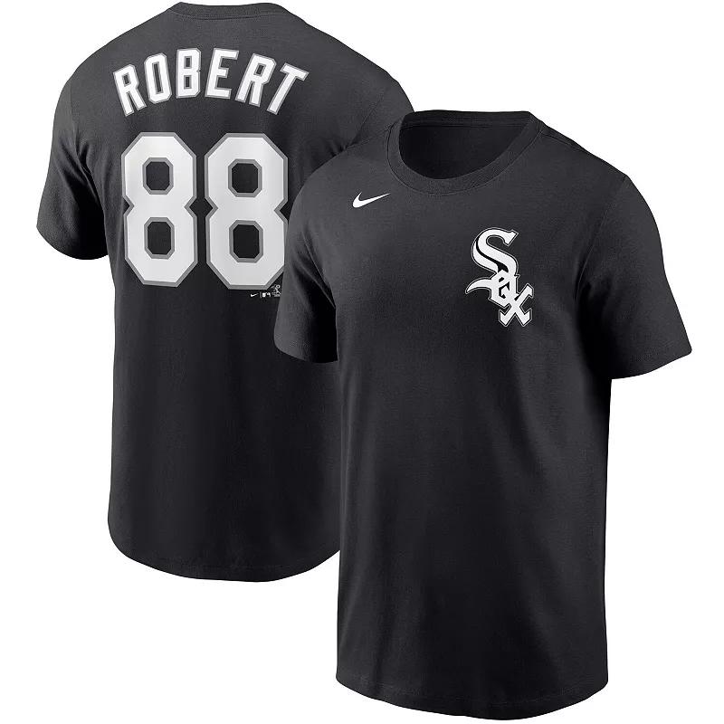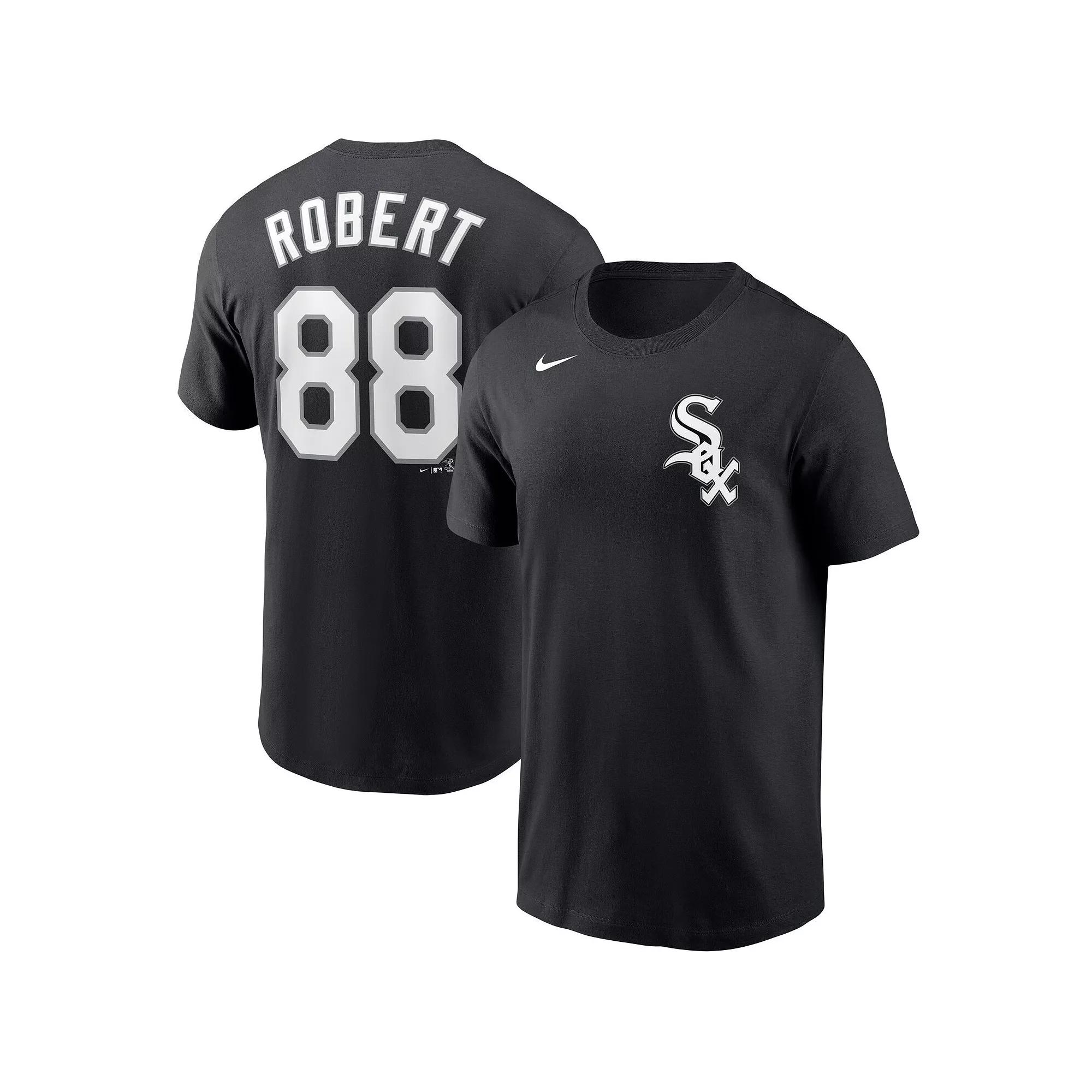 Before Luis Robert steps on the field for the next Chicago White Sox game, gear up in this Name and Number T-shirt from Nike. Its lightweight cotton fabric is breathable and comfortable, perfect for the midsummer heat of baseball season. The back features printed graphics that highlight your admiration for Luis Robert.Before Luis Robert steps on the field for the next Chicago White Sox game, gear up in this Name and Number T-shirt from Nike. Its lightweight cotton fabric is breathable and comfortable, perfect for the midsummer heat of baseball season. The back features printed graphics that highlight your admiration for Luis Robert.PRODUCT FEATURESScreen print graphicsMachine wash, tumble dry lowMaterial: 100% CottonImportedBrand: NikeCrew neckShort sleeveOfficially licensed Color: SOX BLACK. Gender: male. Age Group: adult.