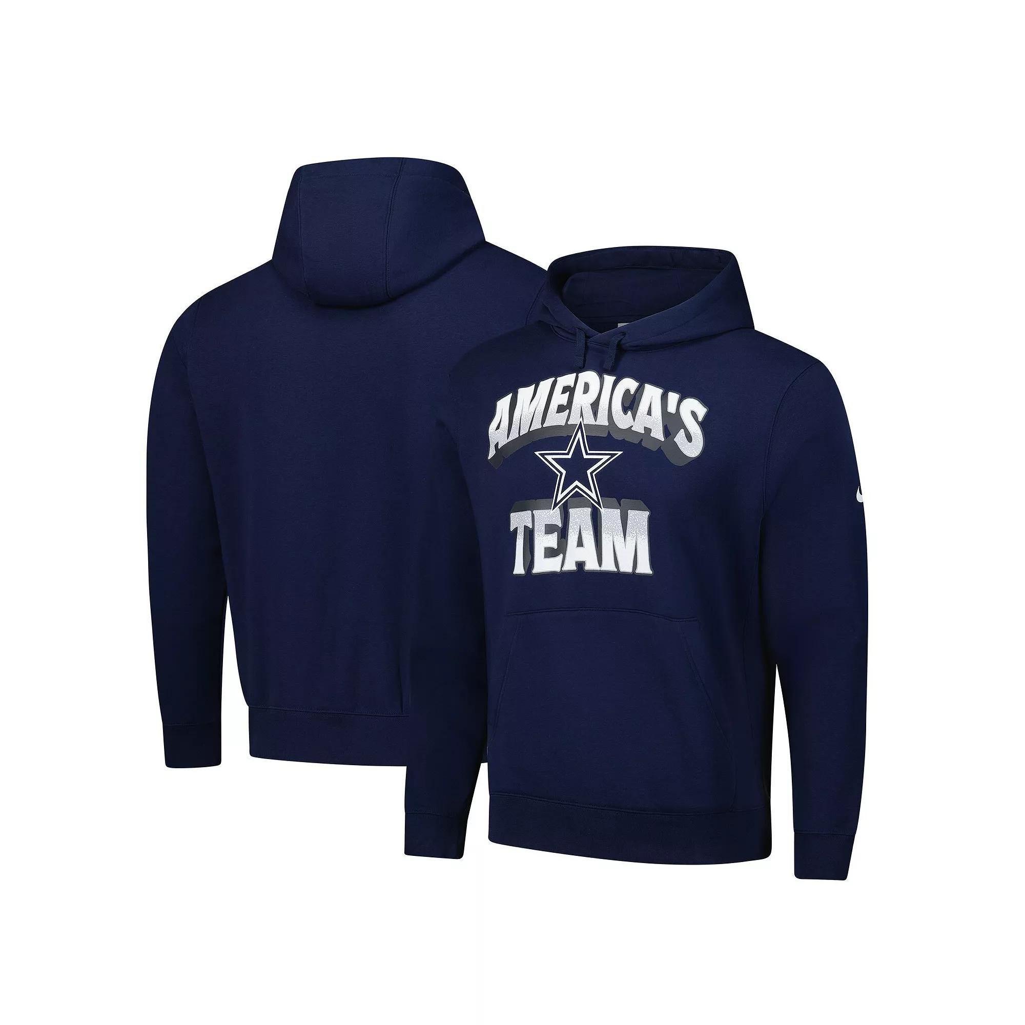 Keep it casual while repping your Dallas Cowboys in this Local America's Team Pullover Hoodie from Nike. This pullover hoodie features a fleece lining for added warmth, making it perfect for moderate temperatures. Plus, the adjustable drawstring hood and ribbed cuffs and hem provide a comfortable, personalized fit.Keep it casual while repping your Dallas Cowboys in this Local America's Team Pullover Hoodie from Nike. This pullover hoodie features a fleece lining for added warmth, making it perfect for moderate temperatures. Plus, the adjustable drawstring hood and ribbed cuffs and hem provide a comfortable, personalized fit.PRODUCT FEATURESLong sleeveMidweight hoodie suitable for moderate temperaturesImportedScreen print graphicsAdjustable drawstring hoodFront pouch pocket to store your essentialsFleece lined for added warmthBrand: NikeRibbed cuffs and hemMaterial: 82% Cotton/18% PolyesterMachine wash, tumble dry lowHoodedOfficially licensedPullover Color: Navy. Gender: male. Age Group: adult.